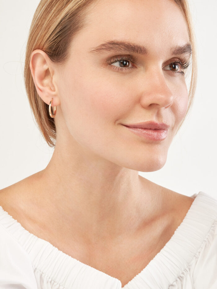 These sophisticated square hoop earrings are crafted from lustrous 14K yellow gold. The knife edge design adds a modern touch, while the 20mm diameter creates a balanced and elegant look. Perfect for adding a touch of luxury to any outfit.