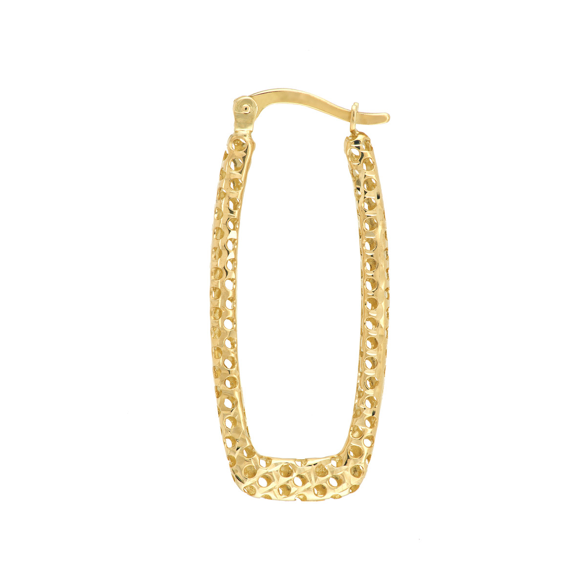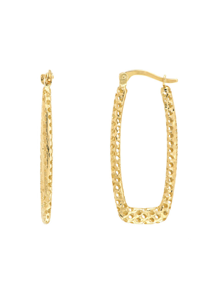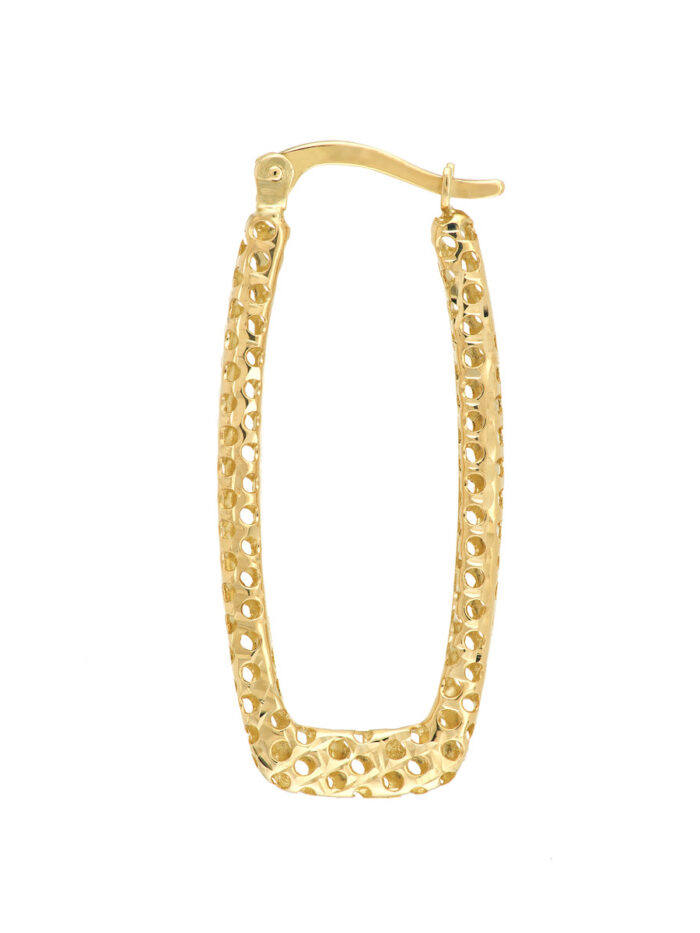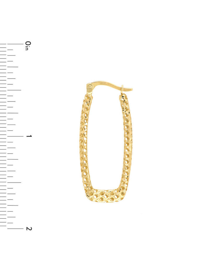 Square Laser Hoop Earrings – 14K Yellow Gold – by Dazyle