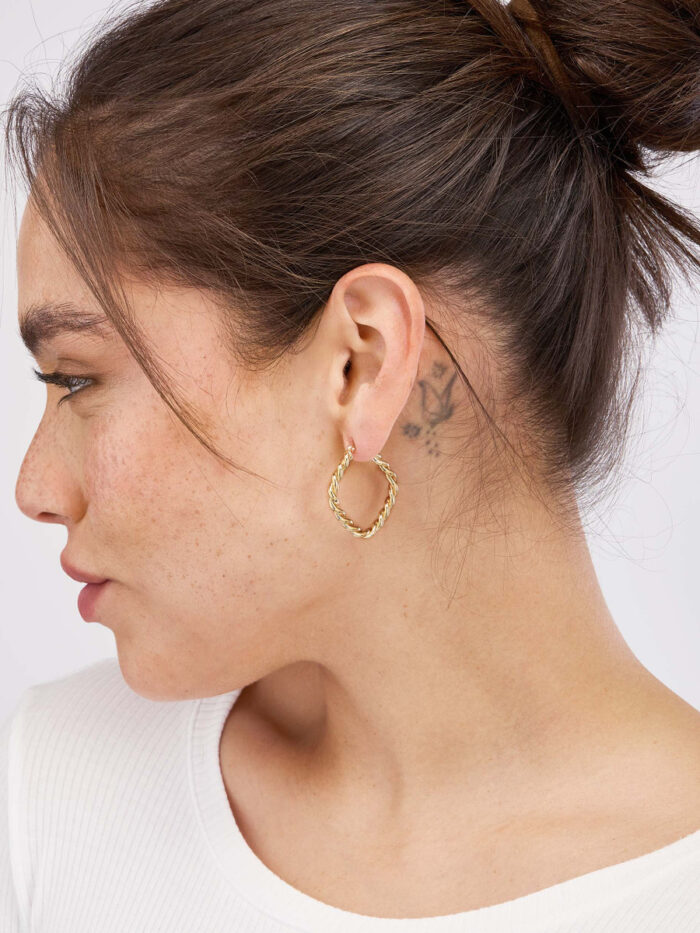 Make a statement with these eye-catching Square Twist Rope Hoop Earrings. Crafted from lustrous 14K yellow gold, these hoops feature a unique twist design that adds a touch of modern elegance to any look. The hinged closure ensures a secure and comfortable fit. Dress up your ear stack with these bold and beautiful hoops, perfect for adding a touch of luxury to your everyday style.