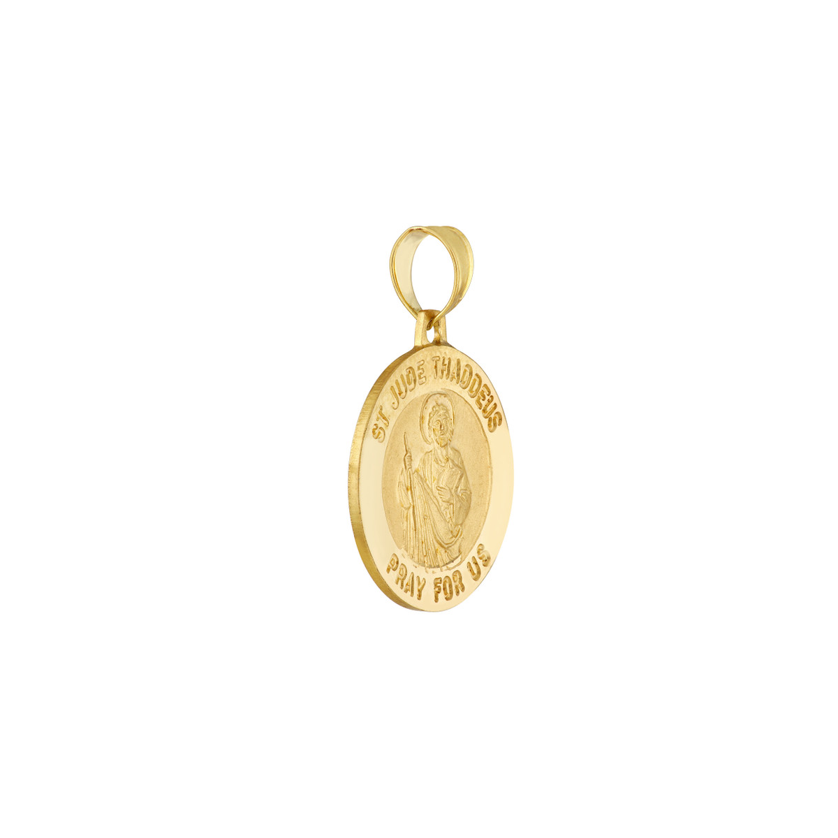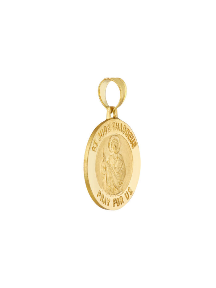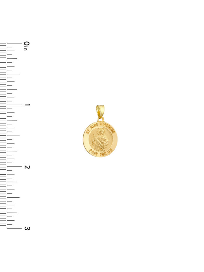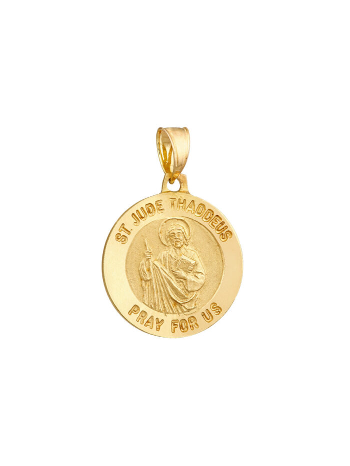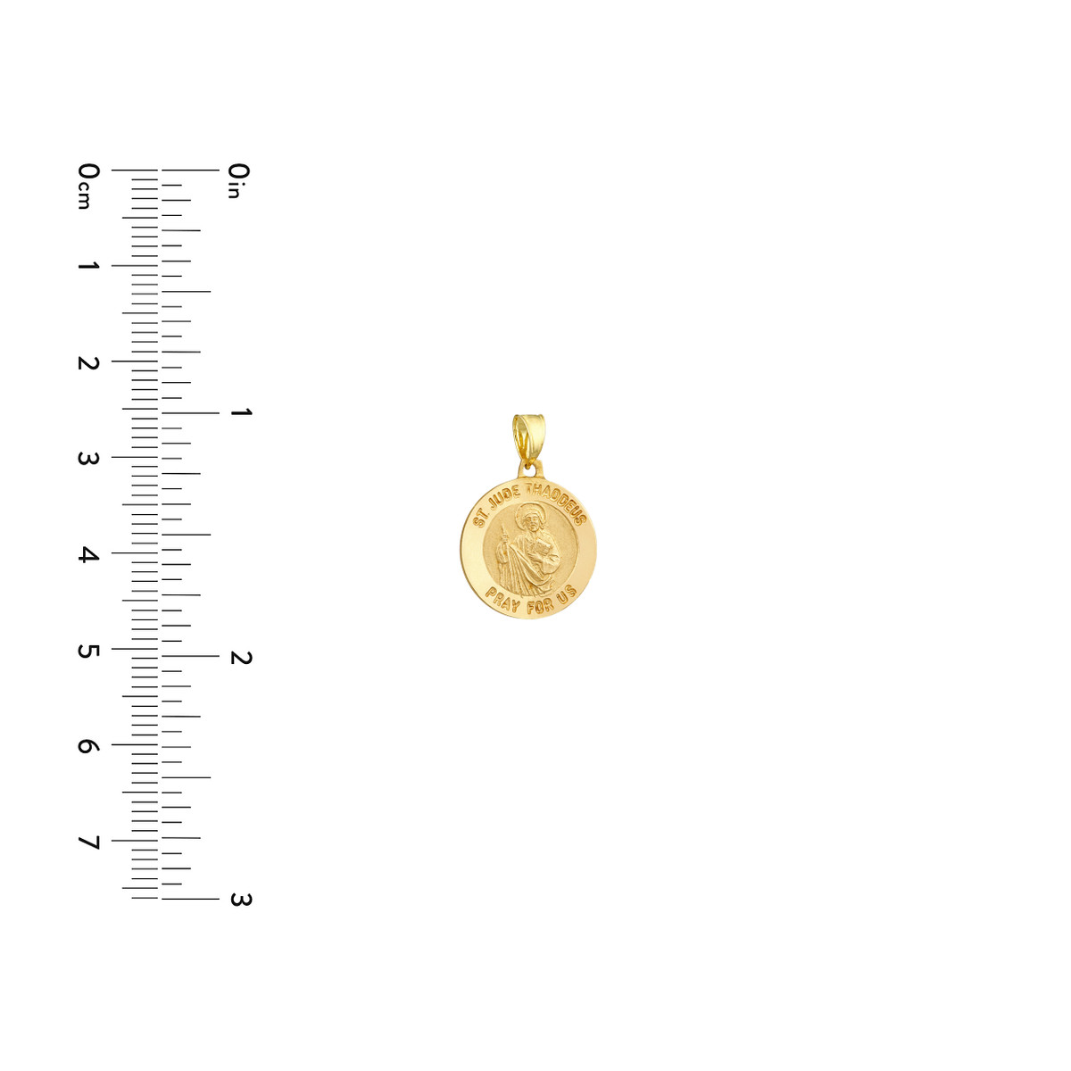 The St. Jude Medal is a timeless symbol of faith and protection. This exquisite 14K yellow gold pendant features a detailed round design of St. Jude Thaddeus, patron saint of hopeless cases. Show your devotion or offer a heartfelt gift to someone special on any religious occasion. Crafted with care and lasting quality, this pendant is a beautiful reminder of hope and guidance.