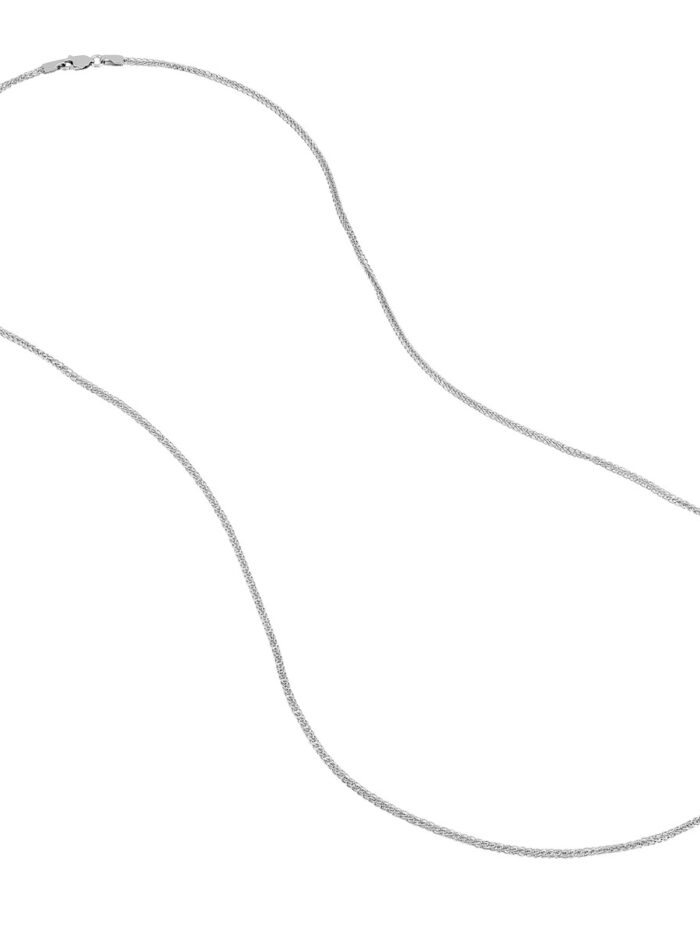 The Sterling Silver Square Wheat Chain is a timeless classic, effortlessly elevating any look. This delicate chain, crafted from gleaming sterling silver, measures 1.25mm in width, creating a subtle yet stylish statement. The secure lobster clasp closure ensures comfort and security. At 16 inches in length, it’s the perfect choice for layering or wearing solo.