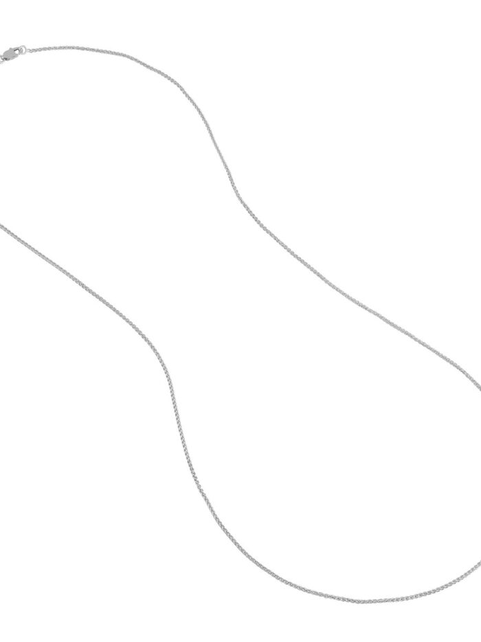 Add a touch of classic elegance to your jewelry collection with the Sterling Silver Wheat Chain. This delicate 1.25mm chain features a timeless wheat design, known for its intricate detailing and graceful appearance. Crafted from sterling silver, it offers a beautiful shine and a secure lobster claw closure. At 16 inches, it’s the perfect length for layering or wearing as a standalone piece.