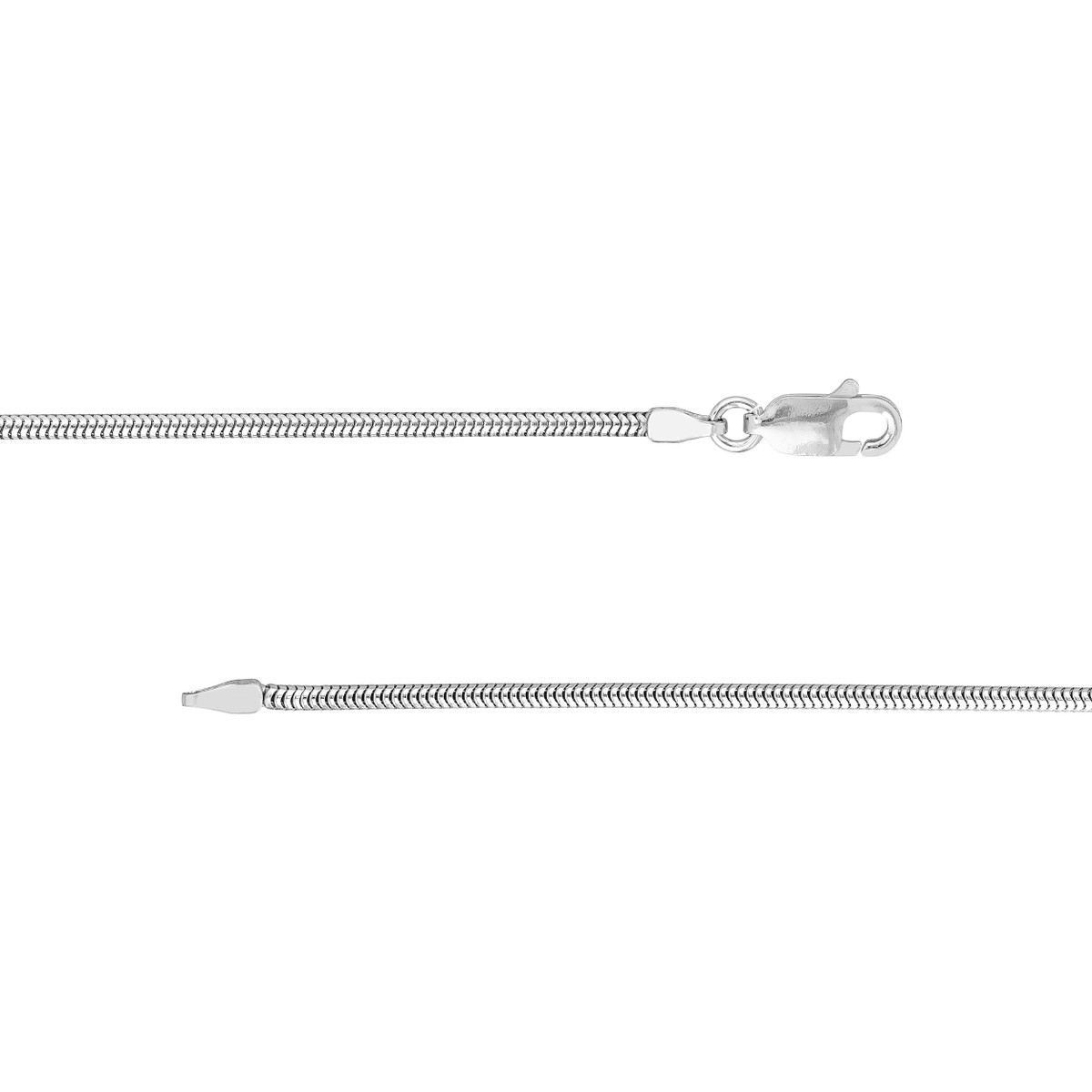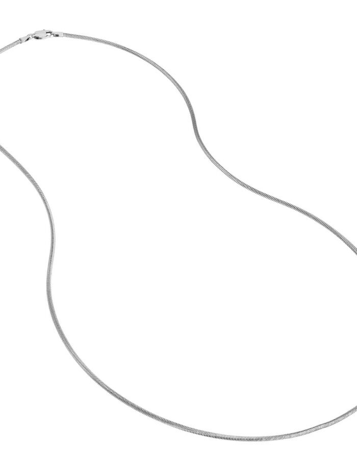 Elevate your style with our effortlessly chic Sterling Silver Snake Chain. This 1.6mm thick chain features a delicate snake design, adding a touch of timeless elegance to any look. The secure Lobster Claw closure ensures comfortable wear, while the 16-inch length is perfect for layering or wearing solo. Crafted from high-quality Sterling Silver, this chain is built to last and will become a cherished addition to your jewelry collection.