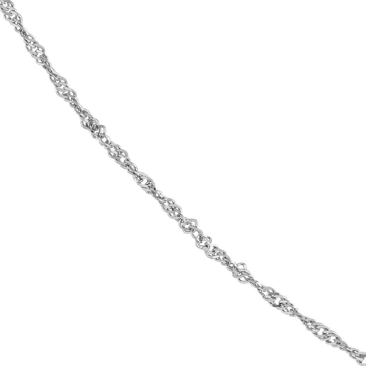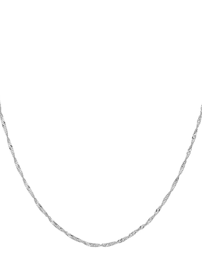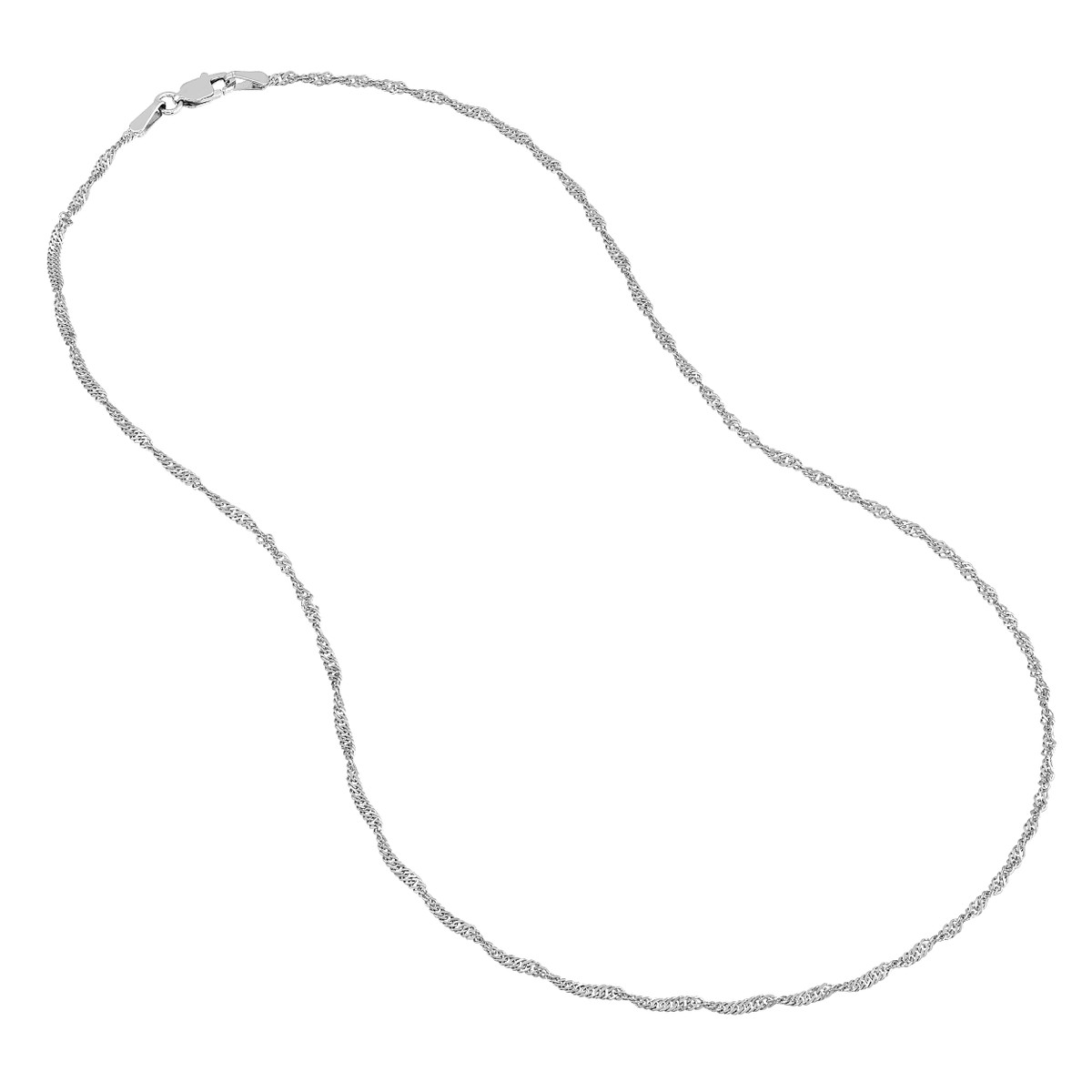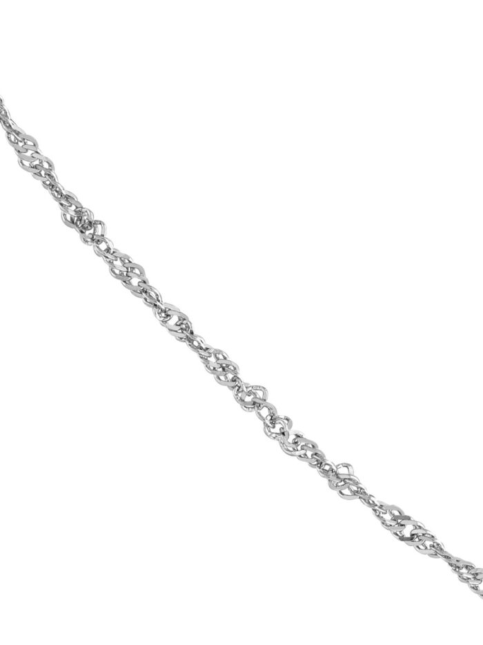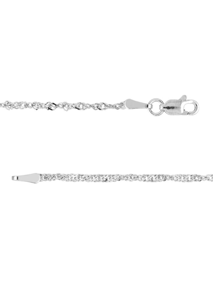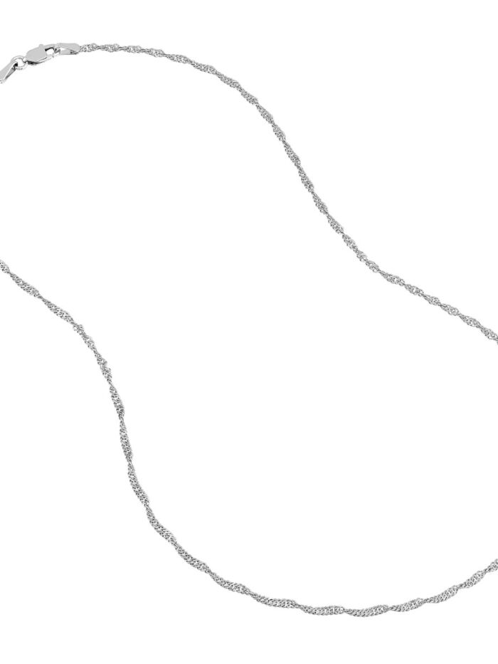 Add a touch of timeless elegance to your look with this Sterling Silver Singapore Chain. The delicate 1.7 mm width and intricate twist detailing create a beautiful, lightweight chain. The classic lobster clasp ensures secure fastening. This versatile chain is perfect for layering or wearing solo, making it a stylish addition to any jewelry collection.