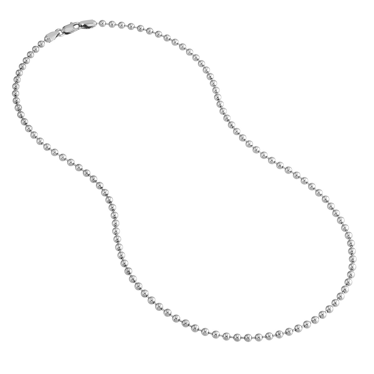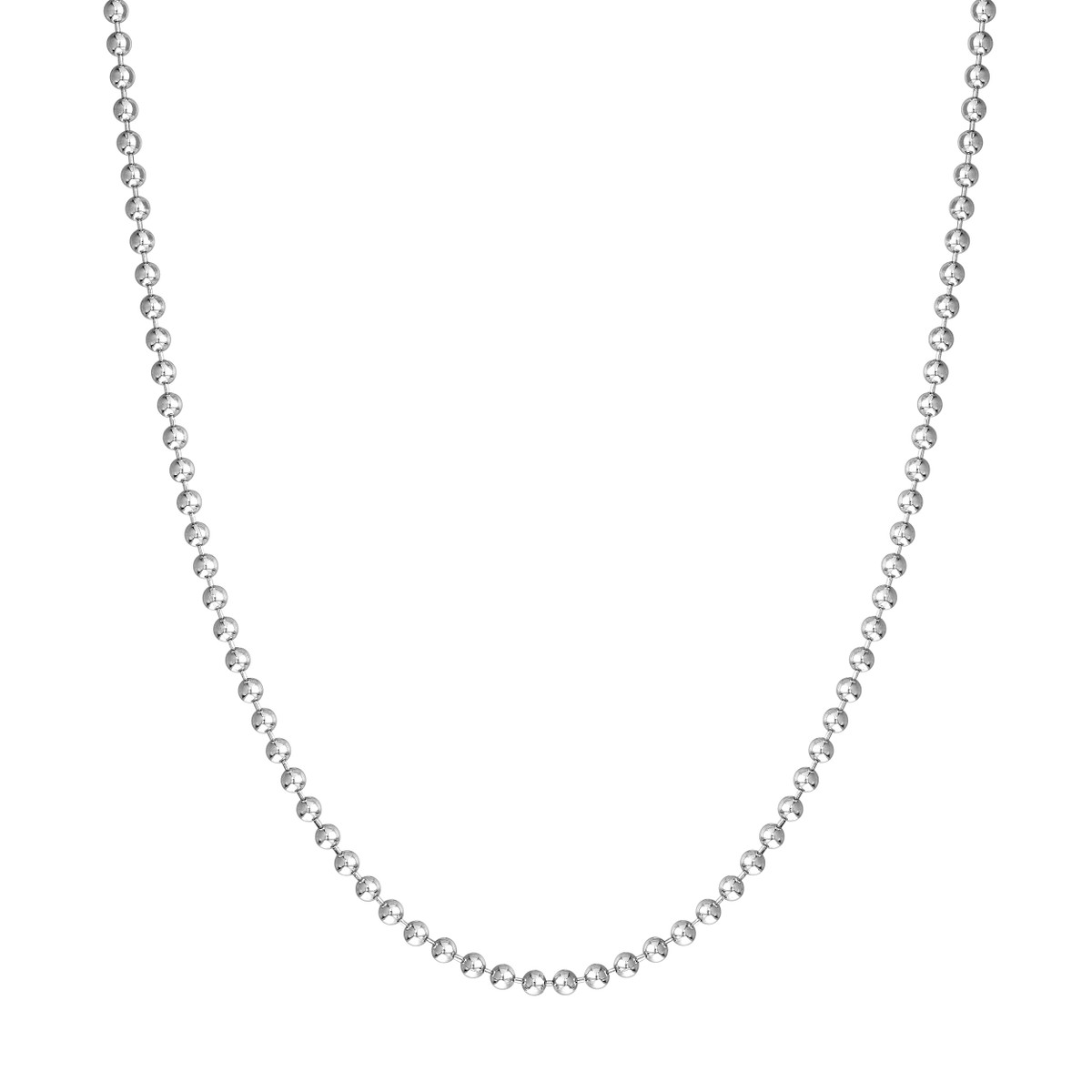 Elevate your style with our Sterling Silver 3mm Bead Chain Necklace. Made from high-quality sterling silver, this necklace is both durable and beautiful. The 3mm beads create a noticeable presence, adding a touch of modern sophistication to any outfit. Secured with a secure lobster clasp, this necklace ensures comfortable wear all day long. Its 18-inch length is perfect for layering or wearing on its own.