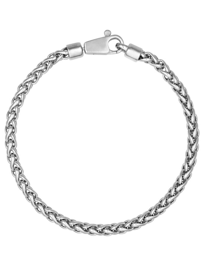 Experience timeless elegance with our Sterling Silver 4.3mm Half Round Spiga Chain Bracelet. This refined bracelet features a classic Spiga chain design crafted from durable Sterling Silver. The secure lobster closure ensures a comfortable and secure fit, making it perfect for everyday wear.