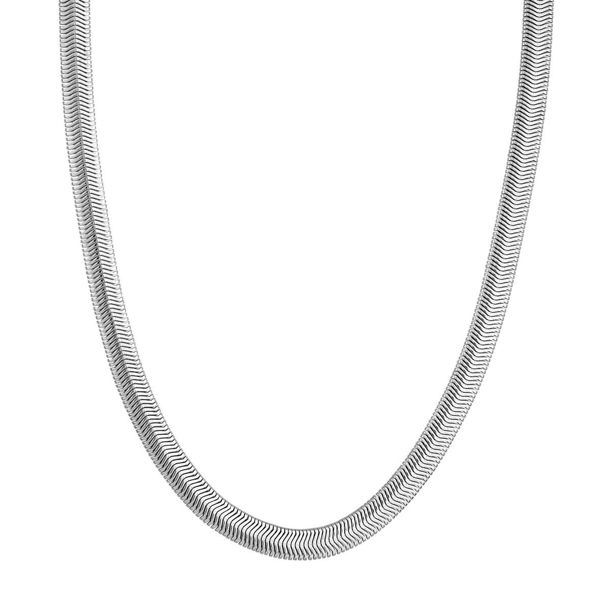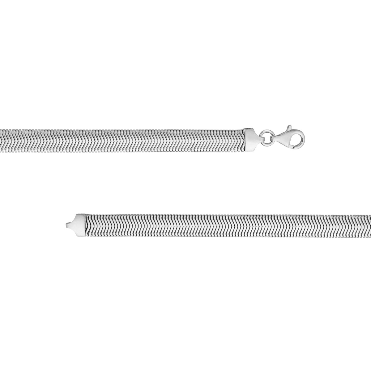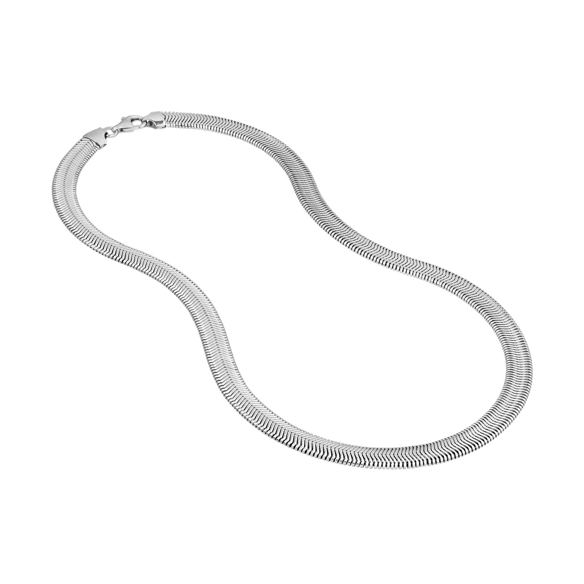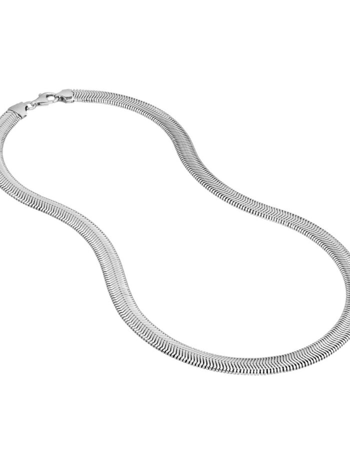 Embrace timeless elegance with our 7.87mm Flat Oval Snake Chain. Crafted from lustrous sterling silver, this chain features a sleek and sophisticated design that complements any style. The smooth, flat oval links interlock seamlessly, creating a beautiful drape that adds a touch of sophistication to your look.