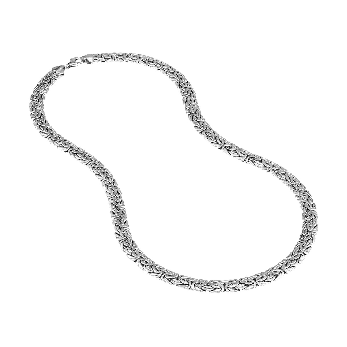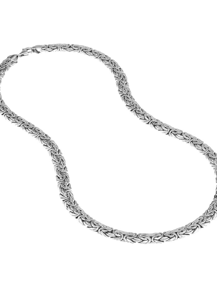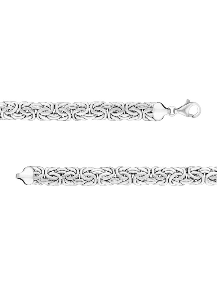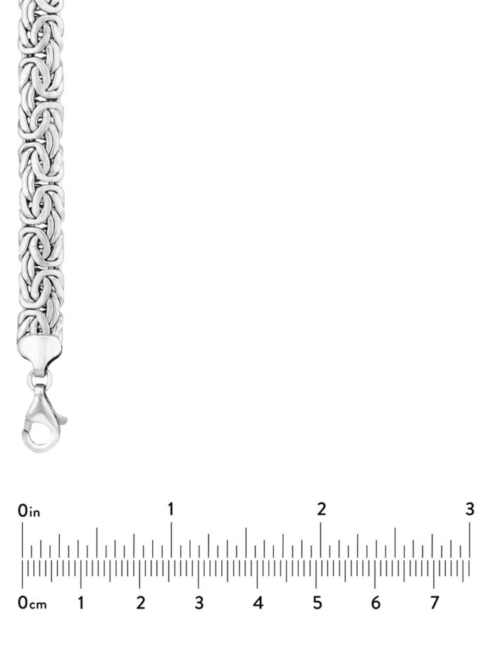 Make a bold statement with this striking Sterling Silver 7mm Flat Byzantine Chain Necklace. The intricate Byzantine chain design, crafted from sterling silver and rhodium plated for added shine, adds a touch of timeless elegance. The 7mm width creates a presence that commands attention, while the secure lobster claw closure ensures comfort and security.