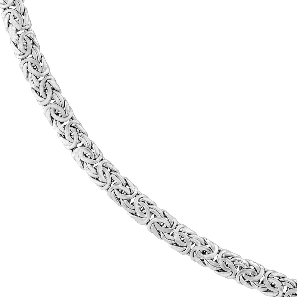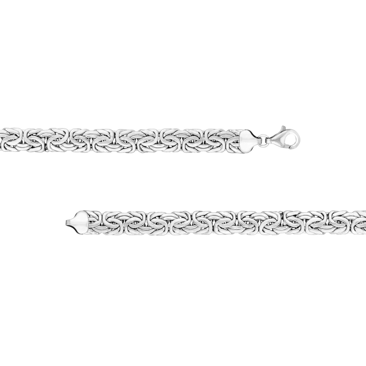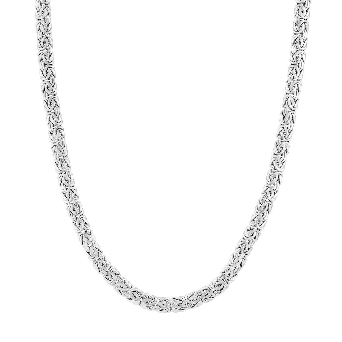 Make a bold statement with this striking Sterling Silver 7mm Flat Byzantine Chain Necklace. The intricate Byzantine chain design, crafted from sterling silver and rhodium plated for added shine, adds a touch of timeless elegance. The 7mm width creates a presence that commands attention, while the secure lobster claw closure ensures comfort and security.