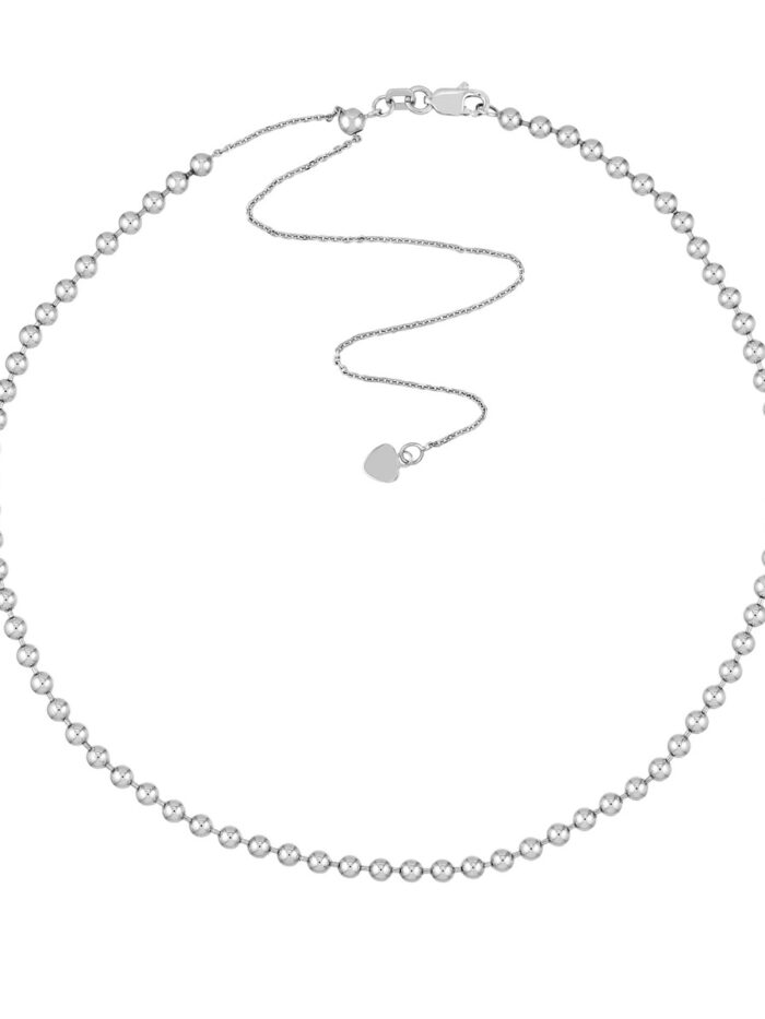 The Dazyle Beaded Adjustable Choker is a stunning piece that effortlessly elevates your look. Crafted from rhodium-plated sterling silver, this choker features a delicate beaded design that adds a touch of sparkle and femininity. The adjustable slider bead allows for a customizable fit, ensuring a perfect match for your neckline. The secure lobster clasp keeps the choker in place, making it a comfortable and stylish choice for any occasion.