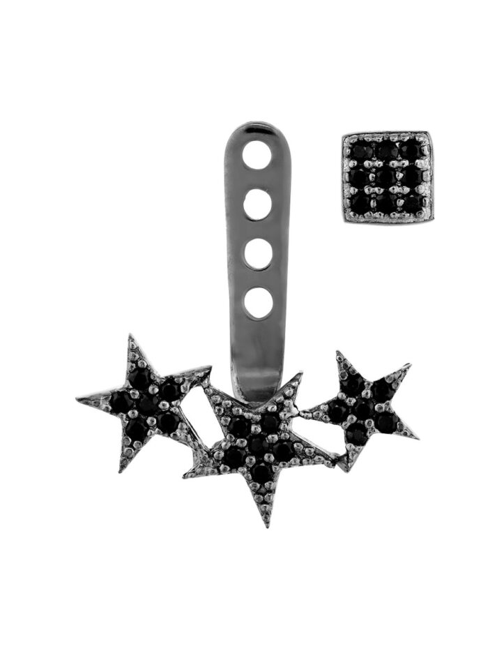 Add a touch of edgy glamour with these stunning black rhodium-plated sterling silver earring jackets. Featuring a striking combination of square and star designs accented with sparkling CZ stones, they are sure to turn heads.