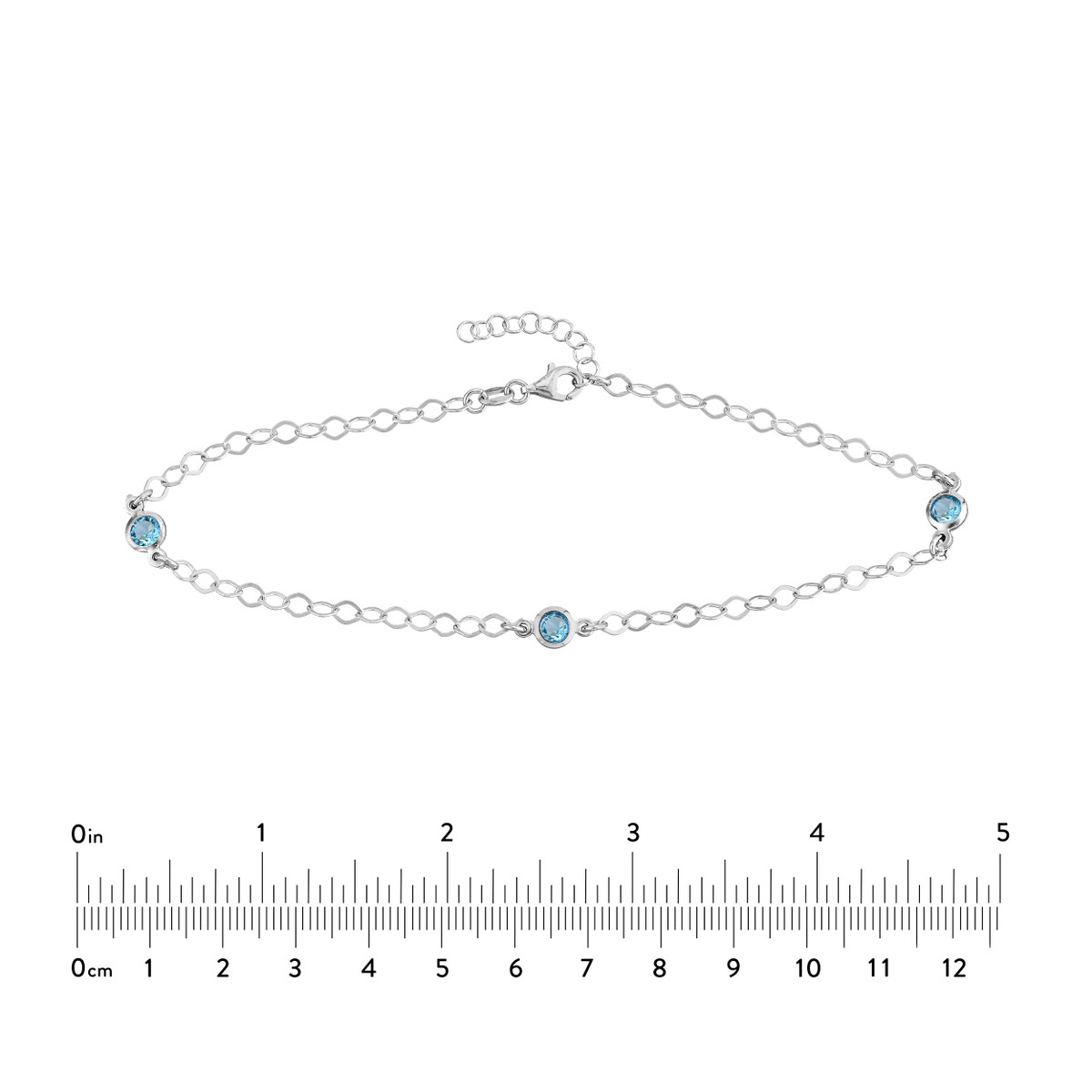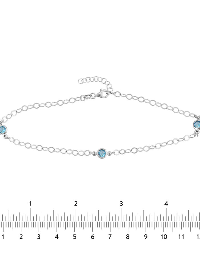 Add a touch of sparkle to your summer look with this Sterling Silver Blue CZ Stations Anklet. The blue CZ stones add a pop of color, while the cable chain creates a delicate and feminine look. The anklet is adjustable from 9 to 10 inches, ensuring a comfortable fit. Rhodium plating provides extra shine and protection.