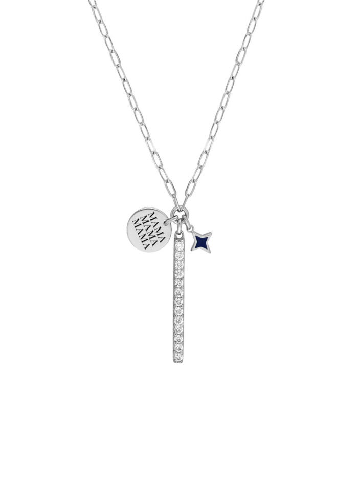 Celebrate the special bond with this stylish Sterling Silver necklace. Featuring a sleek Paper Clip Chain and a CZ bar engraved with ‘Mama’, it’s accented with navy blue enamel star charms, adding a touch of personality. Made from durable Sterling Silver, this necklace is a timeless piece that can be worn every day. Its 20-inch fixed length ensures a classic, versatile look.