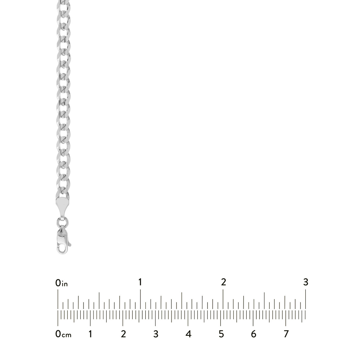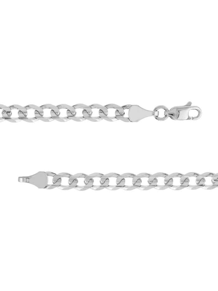 Make a statement with this eye-catching Sterling Silver Light Curb Chain. Crafted with rhodium plating, this chain offers a luxurious shine while ensuring lasting durability. The classic curb design adds a touch of sophistication, and the 5.2mm width makes a bold yet elegant impression. The secure lobster clasp ensures a comfortable fit, making it perfect for everyday wear or special occasions.