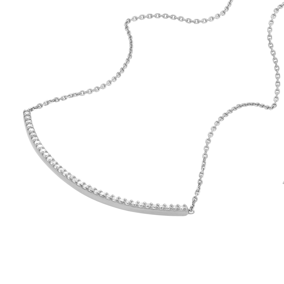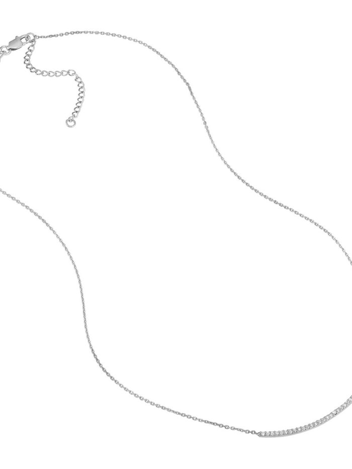 Add a touch of sparkle and versatility to your jewelry collection with this Sterling Silver Curved CZ Bar Adjustable Necklace. Crafted from sterling silver and flash plated in yellow gold, the curved bar design is accented with dazzling cubic zirconia stones. The adjustable length allows you to customize the fit for a perfect look. Whether you’re layering necklaces or wearing it solo, this piece adds a touch of modern elegance to any outfit.