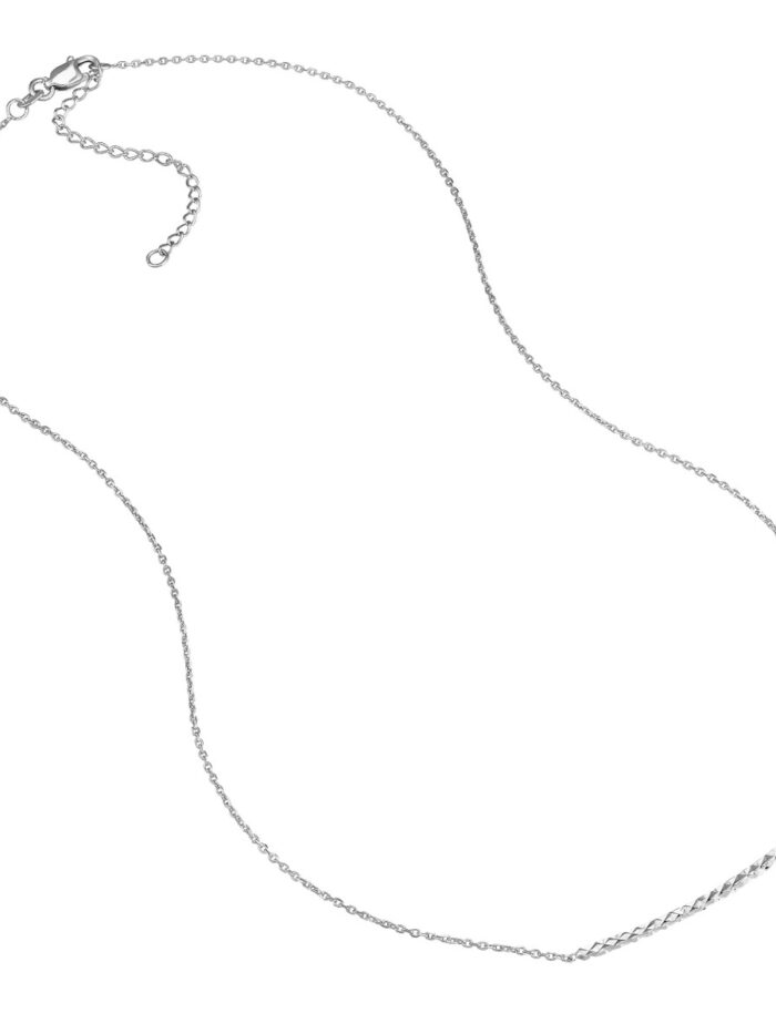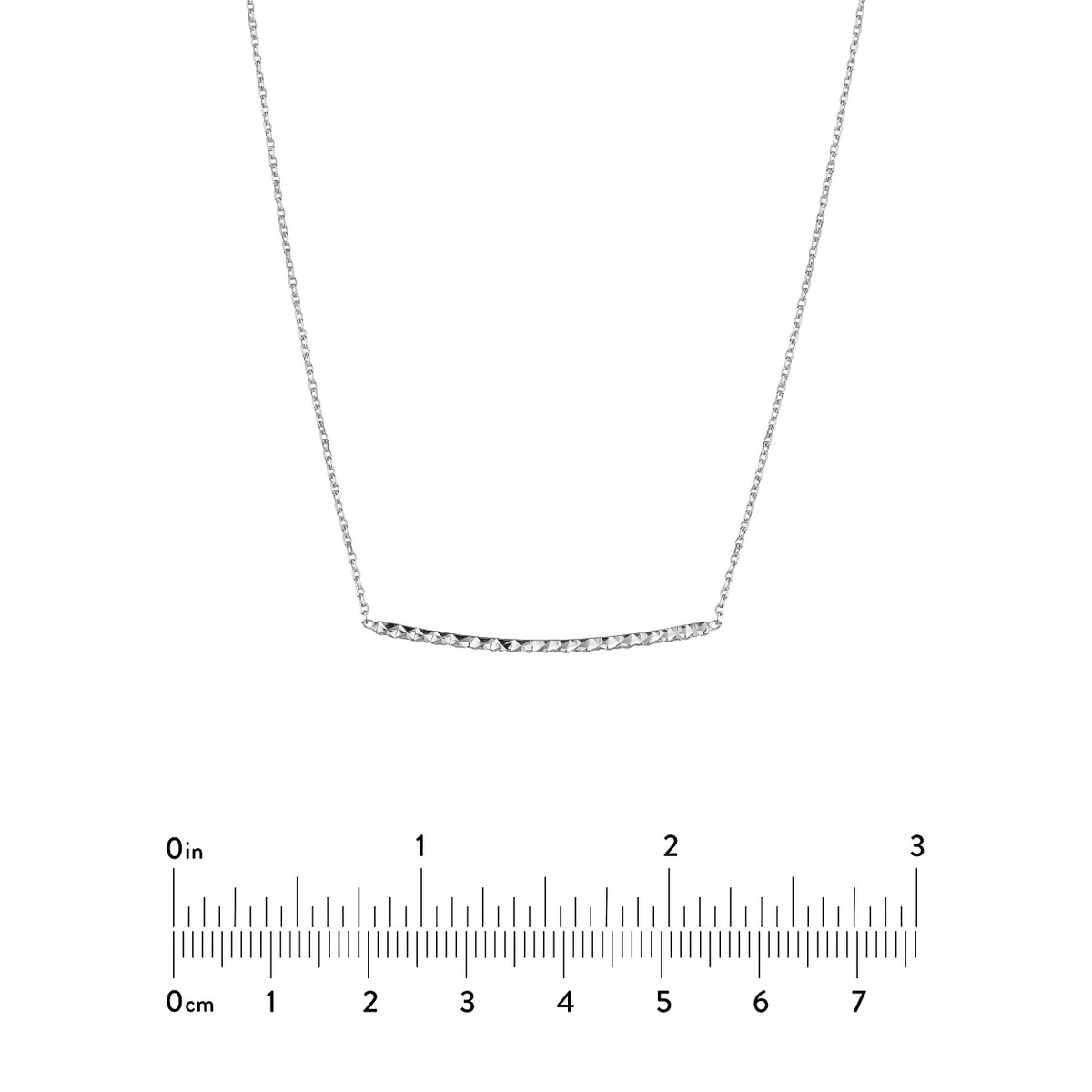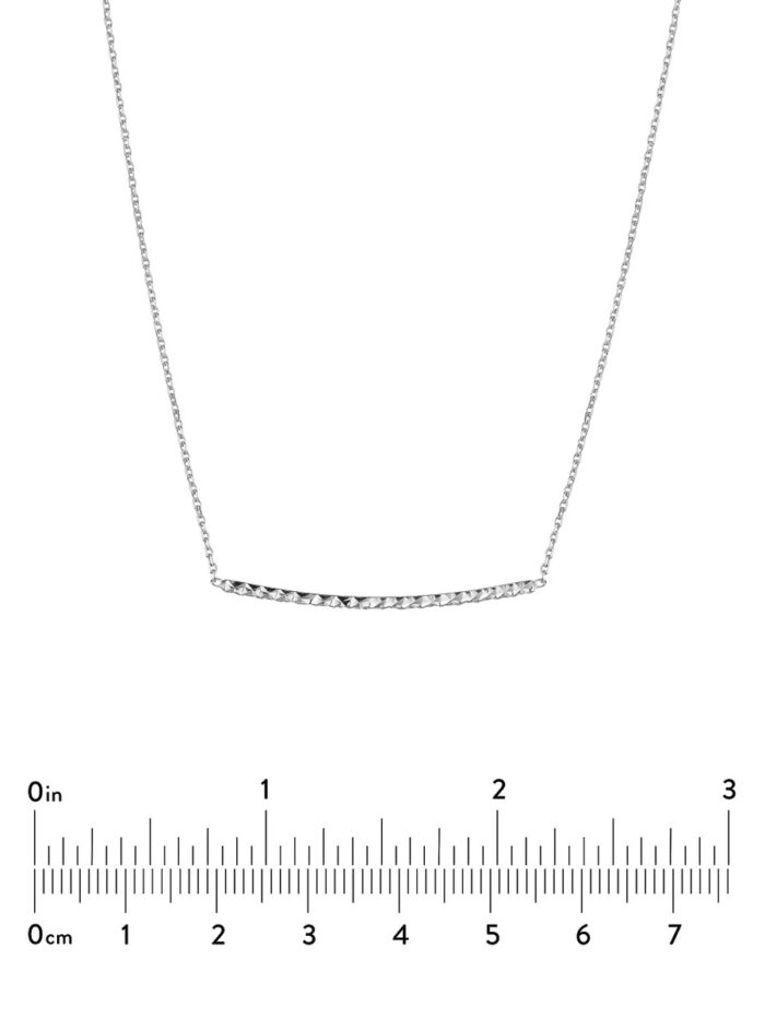 This sleek and modern curved bar necklace adds a touch of sophistication to any look. Crafted in Sterling Silver with a dazzling diamond-cut finish, it’s a piece that shines both alone or layered with other necklaces. The adjustable cable chain ensures a comfortable and personalized fit.