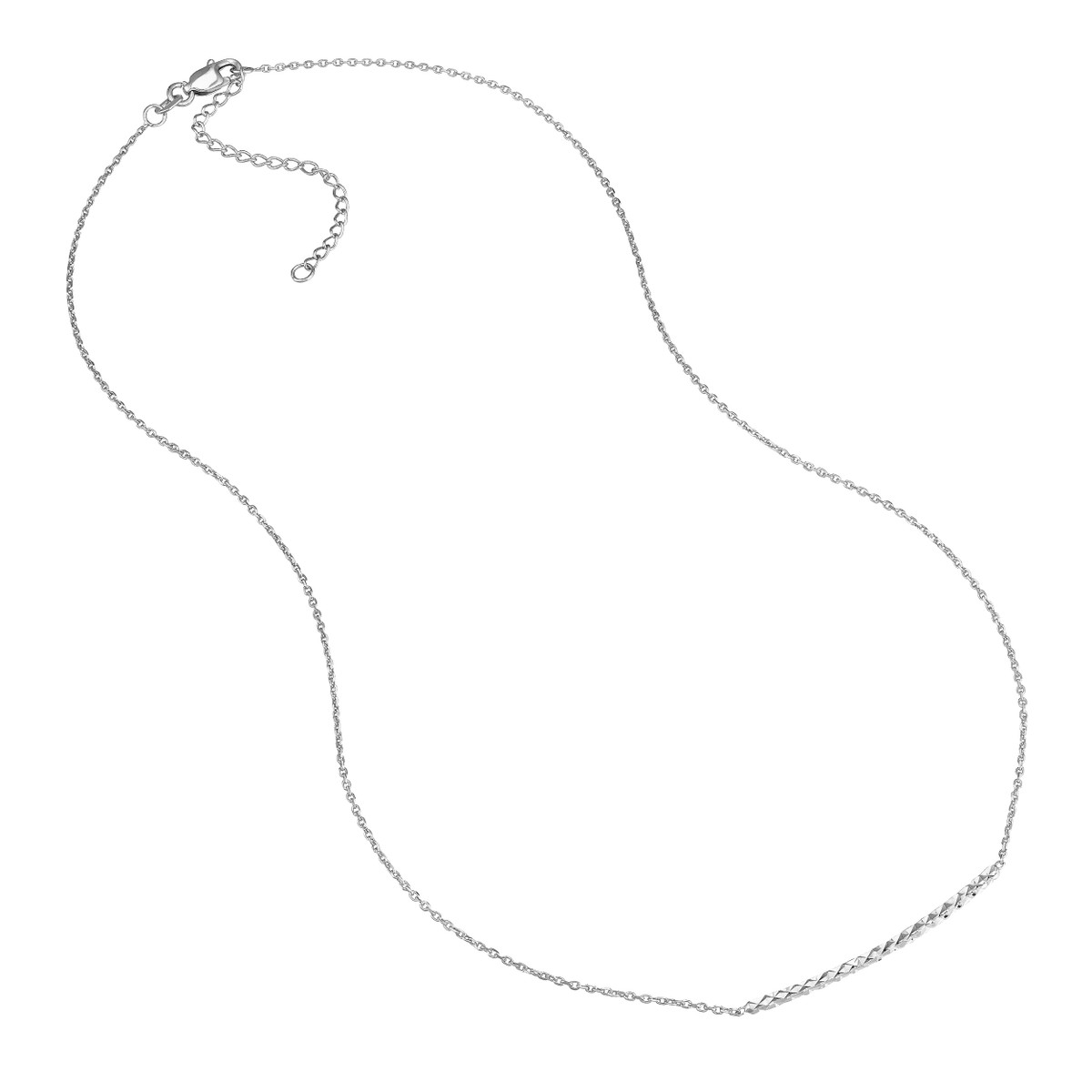 Sterling Silver Curved Diamond-Cut Bar Necklace Adjustable Cable Chain – Sterling Silver – 18 inch – by Dazyle