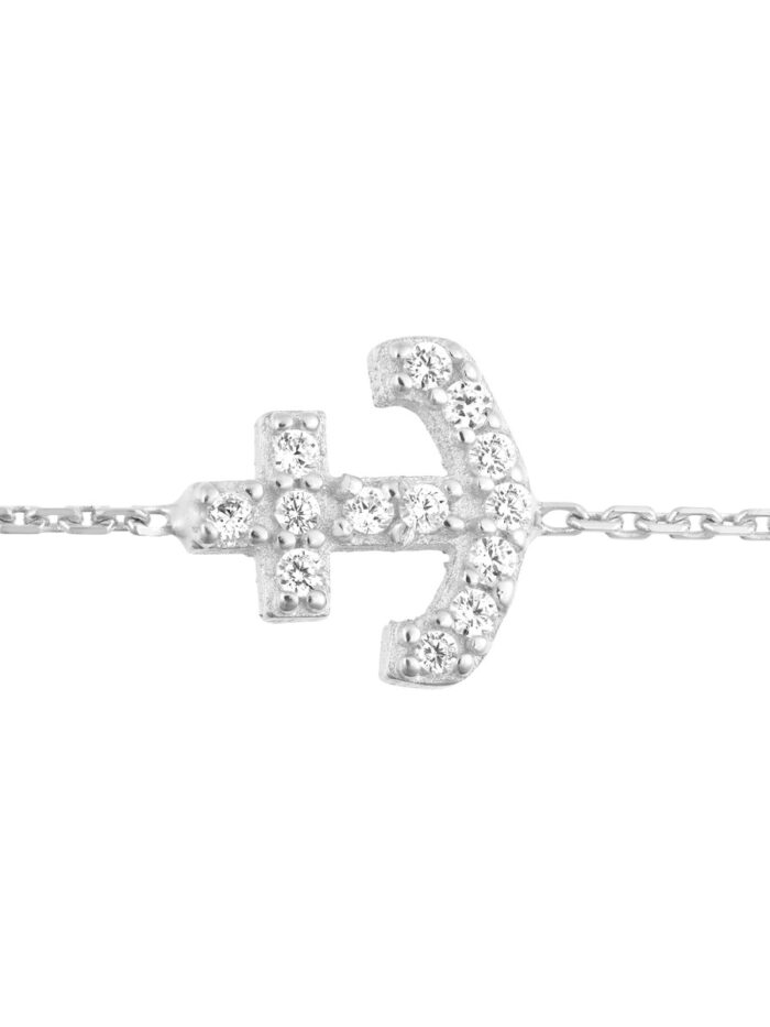 Adorn yourself with the enduring symbol of strength and stability with this charming Sterling Silver Mini Anchor Bracelet. Featuring a delicate CZ accent, the sideways mini anchor charm adds a touch of modern elegance. This bracelet is crafted in enduring Sterling Silver and features a secure lobster clasp closure. Its adjustable chain allows for a perfect fit, making it a versatile choice for everyday wear.