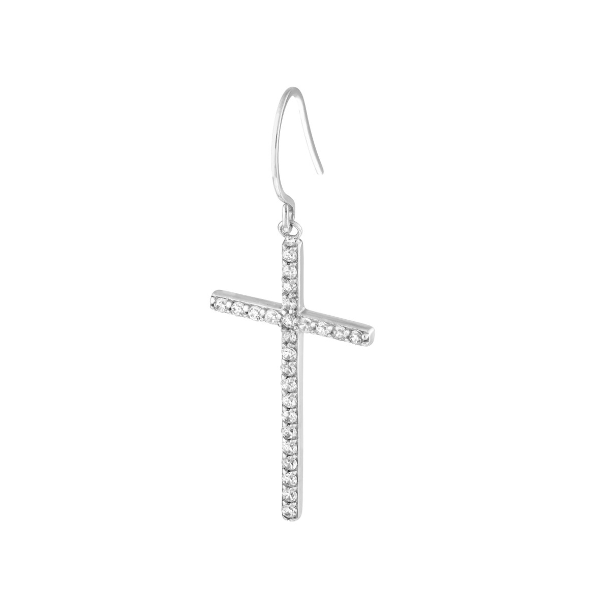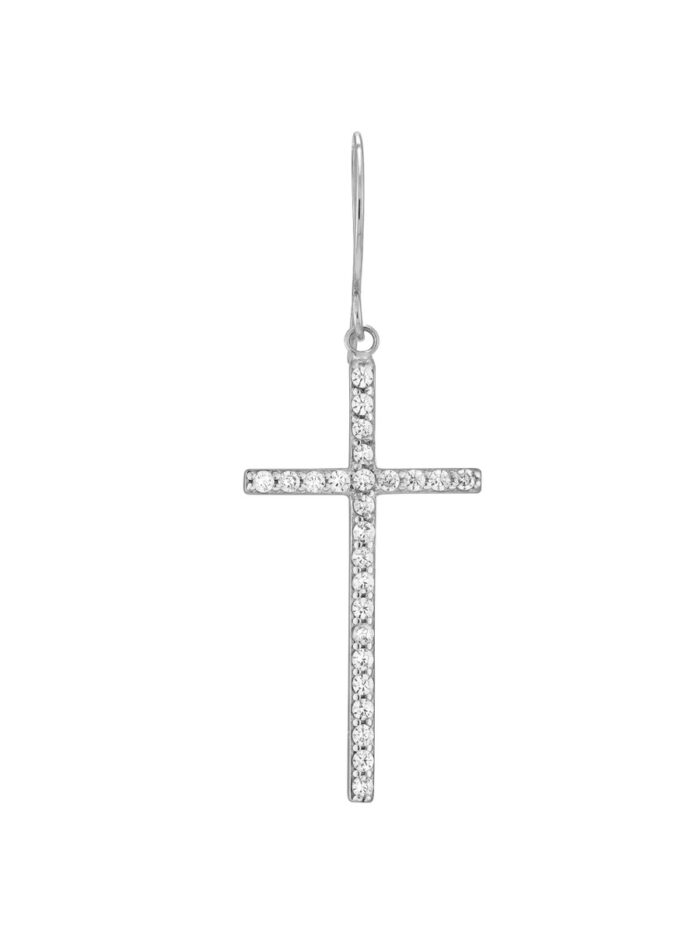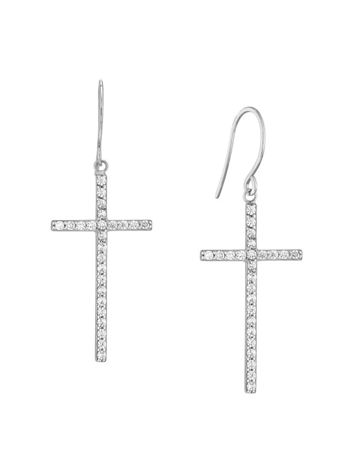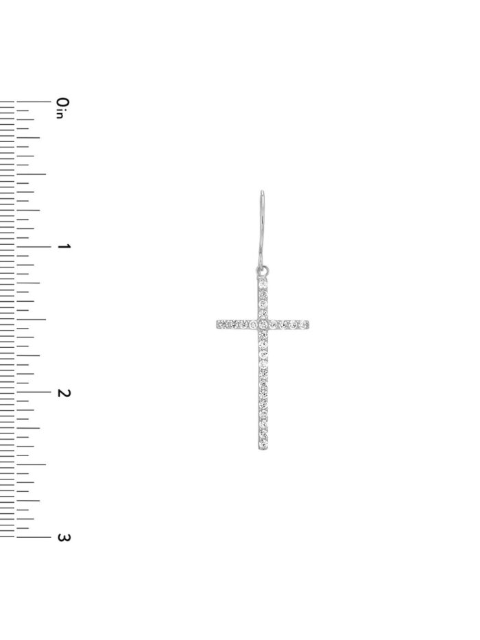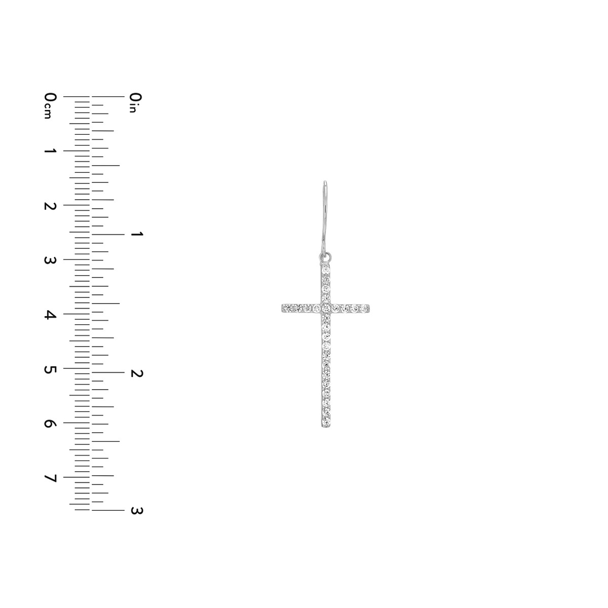 These classic cross dangle earrings are a beautiful and versatile accessory. Crafted from sterling silver and adorned with sparkling cubic zirconia, they add a touch of elegance to any outfit. The rhodium plating ensures a long-lasting shine. The fish hook closure makes them easy to put on and take off.