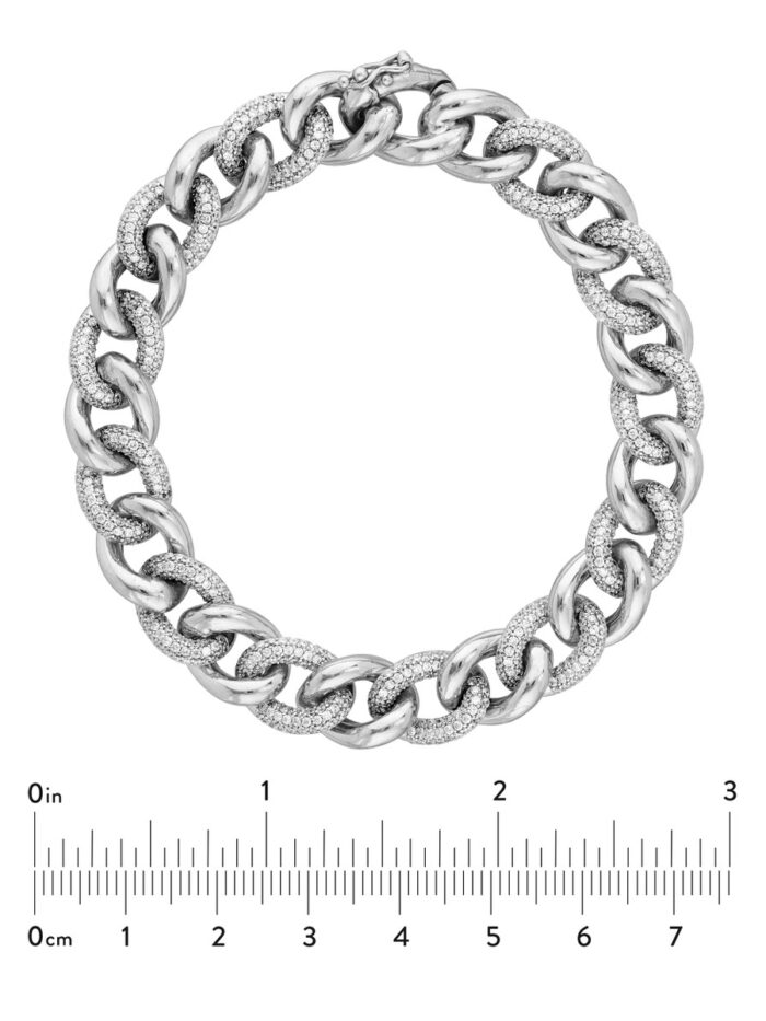 Make a statement with this elegant Sterling Silver Curb link bracelet, sparkling with polished and cubic zirconia accents. The semi-solid bracelet features a classic curb chain style and measures 8 inches in length, making it a versatile addition to any jewelry collection. Crafted from rhodium-plated Sterling Silver, this bracelet offers a durable and luxurious finish, adding a touch of sparkle to your everyday look.