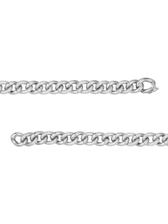 Make a statement with this elegant Sterling Silver Curb link bracelet, sparkling with polished and cubic zirconia accents. The semi-solid bracelet features a classic curb chain style and measures 8 inches in length, making it a versatile addition to any jewelry collection. Crafted from rhodium-plated Sterling Silver, this bracelet offers a durable and luxurious finish, adding a touch of sparkle to your everyday look.