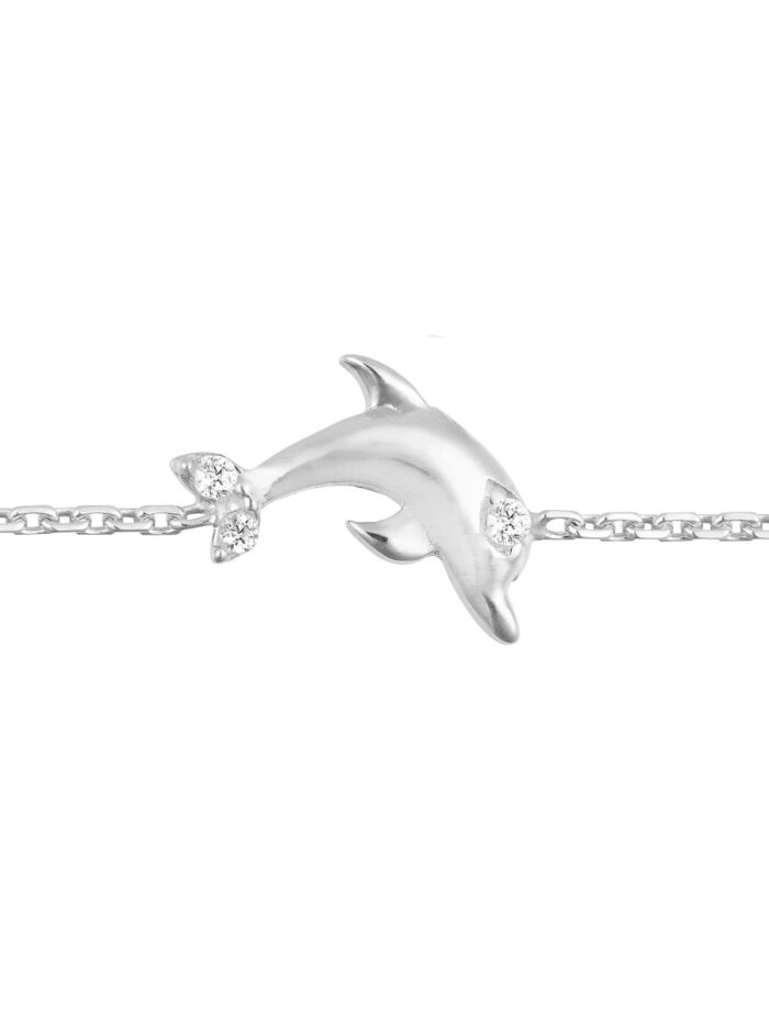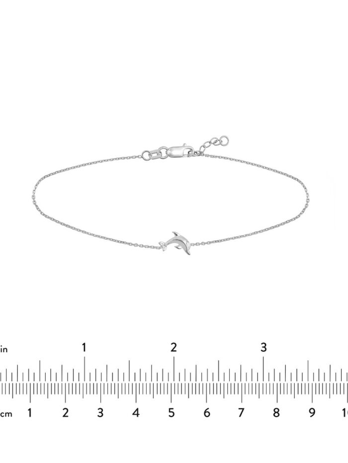 Embrace the spirit of harmony and grace with this enchanting Sterling Silver Mini Dolphin Bracelet. The charm features a sparkling CZ accent, bringing a touch of brilliance to this timeless symbol. Crafted in durable Sterling Silver and plated in your choice of rhodium, yellow gold, or rose gold, this bracelet embodies both elegance and strength. Its adjustable chain ensures a comfortable and personalized fit.