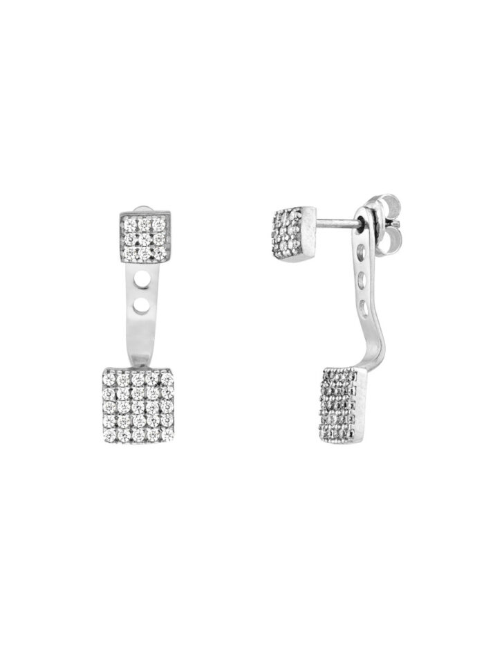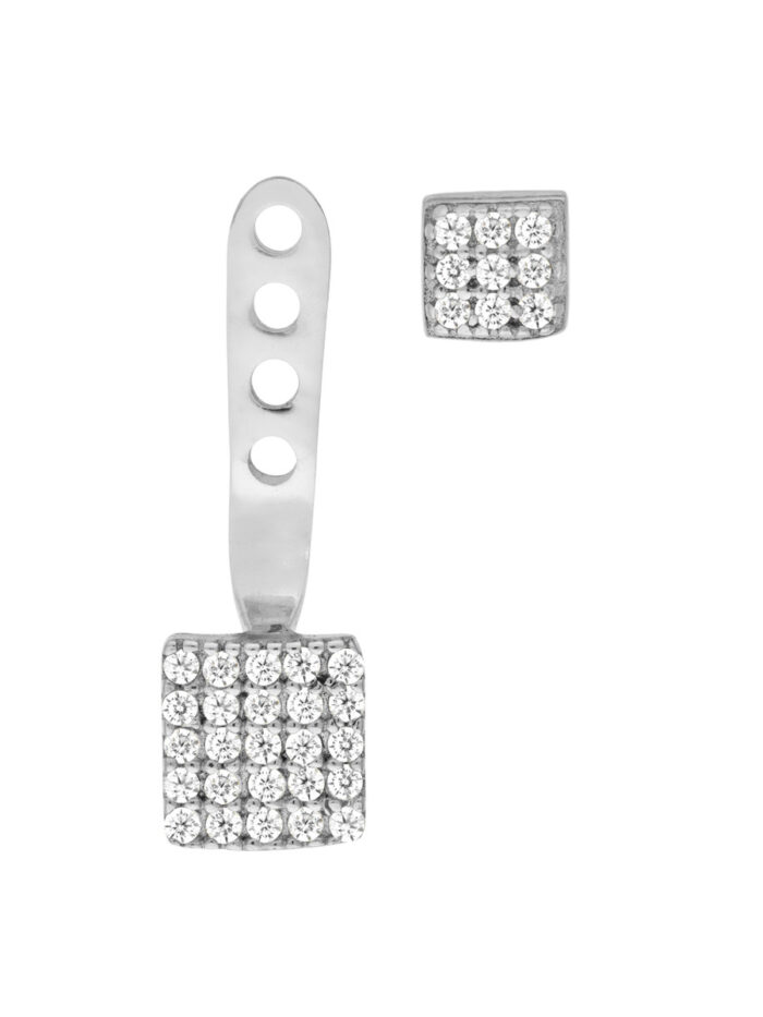 Make a bold statement with these eye-catching Sterling Silver CZ Double Square Earring Jackets. Crafted from rhodium-plated Sterling Silver, these jackets feature a modern double square design accented with sparkling CZ stones. Lightweight and secure with a post and nut closure, they add a touch of glamour to any ensemble.