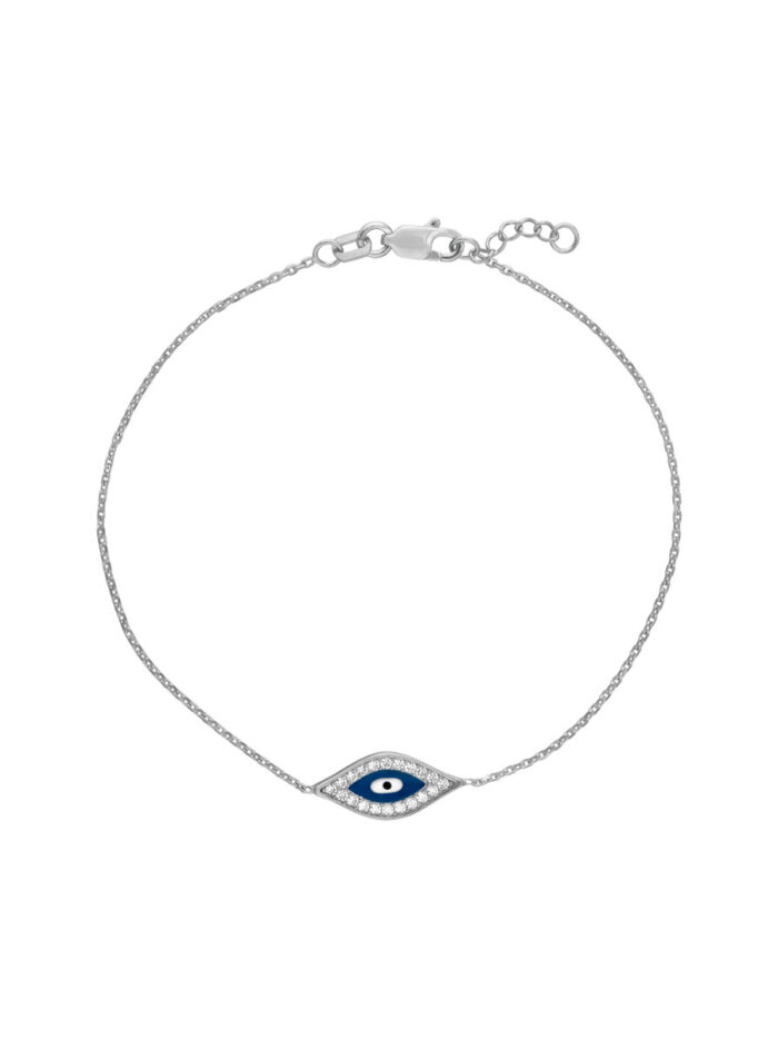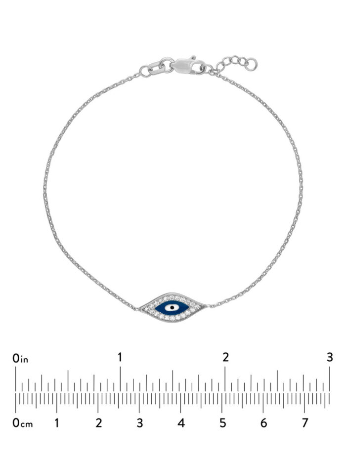 Add a touch of mystique to your look with this Sterling Silver CZ Evil Eye Adjustable Bracelet. Featuring a captivating evil eye design adorned with sparkling CZ stones, this bracelet is crafted from durable Sterling Silver and plated in rhodium and yellow gold for a lustrous finish. The adjustable lobster clasp closure ensures a comfortable and secure fit, making it perfect for everyday wear.