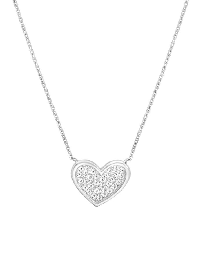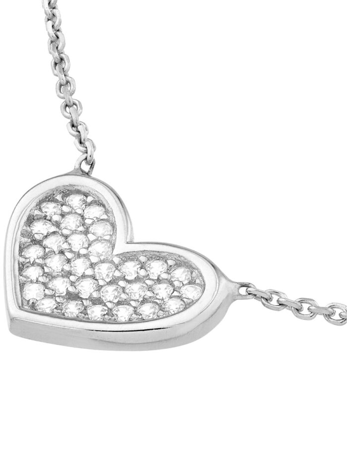 Add a touch of feminine charm to your look with this Sterling Silver CZ-Filled Heart Adjustable Necklace. The delicate heart pendant, adorned with sparkling CZ stones, is sure to catch the light with every movement. Crafted from high-quality Sterling Silver, this necklace is both durable and beautiful. Its adjustable chain allows for a personalized fit, making it perfect for any occasion.