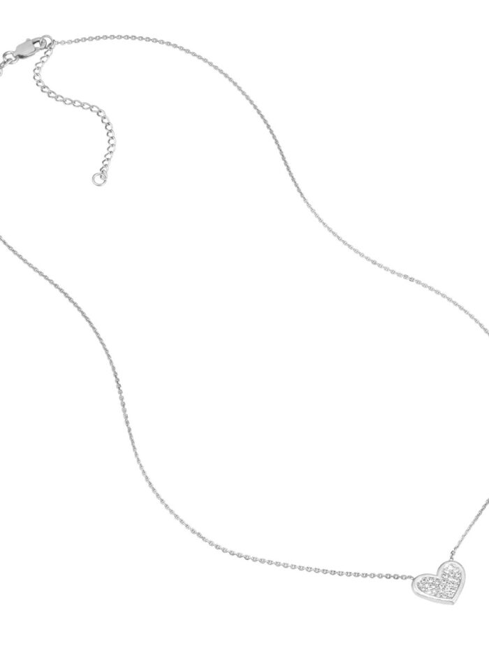 Add a touch of feminine charm to your look with this Sterling Silver CZ-Filled Heart Adjustable Necklace. The delicate heart pendant, adorned with sparkling CZ stones, is sure to catch the light with every movement. Crafted from high-quality Sterling Silver, this necklace is both durable and beautiful. Its adjustable chain allows for a personalized fit, making it perfect for any occasion.