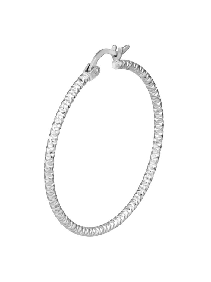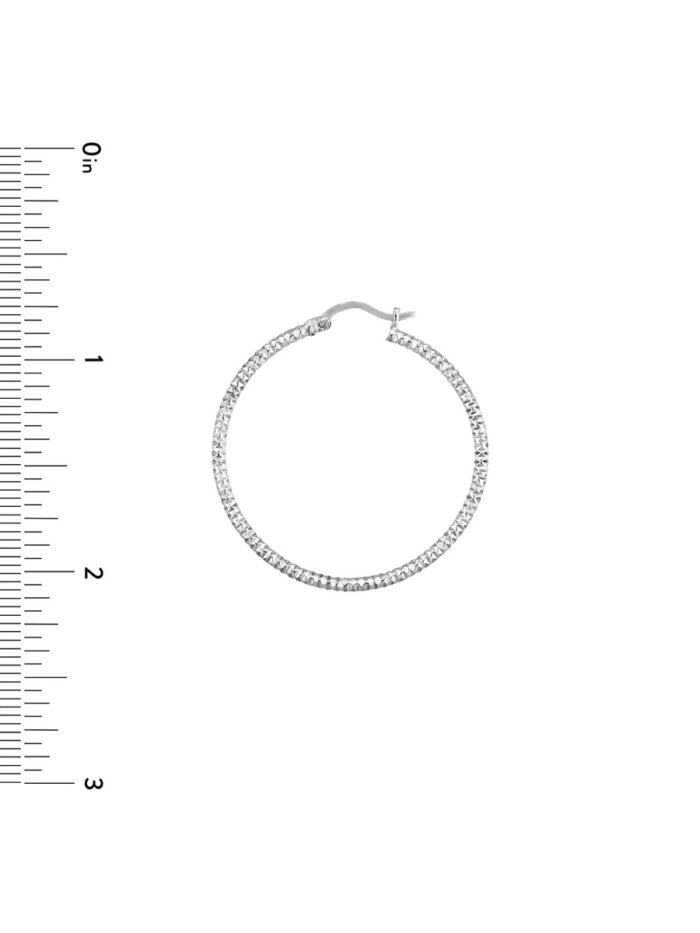 Embrace timeless elegance with these Sterling Silver Diamond-Cut Hoop Earrings. Their intricate diamond-cut design catches the light beautifully, creating a mesmerizing sparkle. Crafted in rhodium-plated Sterling Silver, these earrings are both elegant and durable. The secure hinge back closure ensures they stay in place all day long. At 30mm in diameter, they offer a classic and sophisticated look.