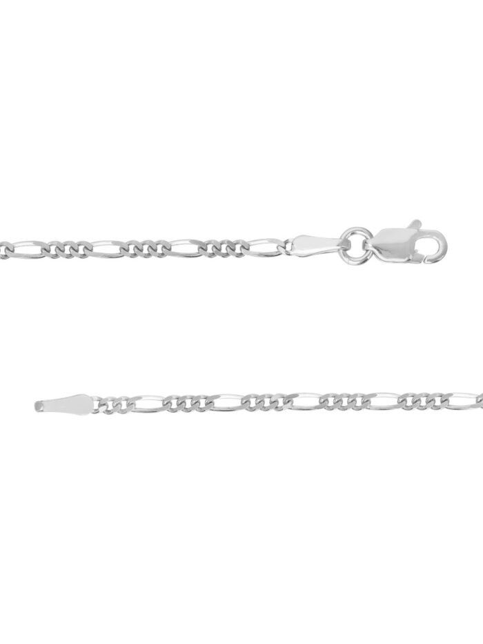 Elevate your style with our exquisite Sterling Silver Figaro Chain. This classic chain, crafted with meticulous attention to detail, features a distinctive Figaro pattern, adding a touch of elegance to any outfit. The rhodium finish enhances the chain’s brilliance and ensures lasting shine. Featuring a secure lobster clasp, this 16-inch chain is the perfect complement to pendants or worn solo for a timeless look.