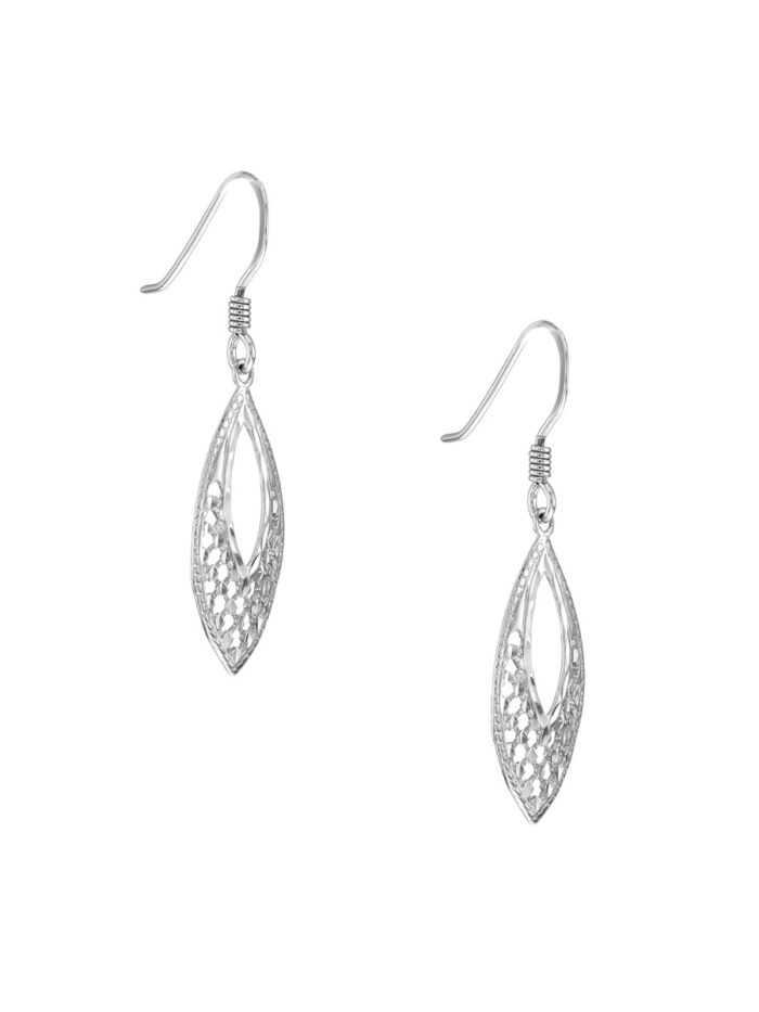 Experience the timeless elegance of these Sterling Silver Filigree Marquise Dangle Earrings. Rhodium plating enhances their brilliance, while the intricate filigree design adds a touch of sophistication. The marquise shape creates a flattering silhouette, making these earrings perfect for both casual and special occasions.