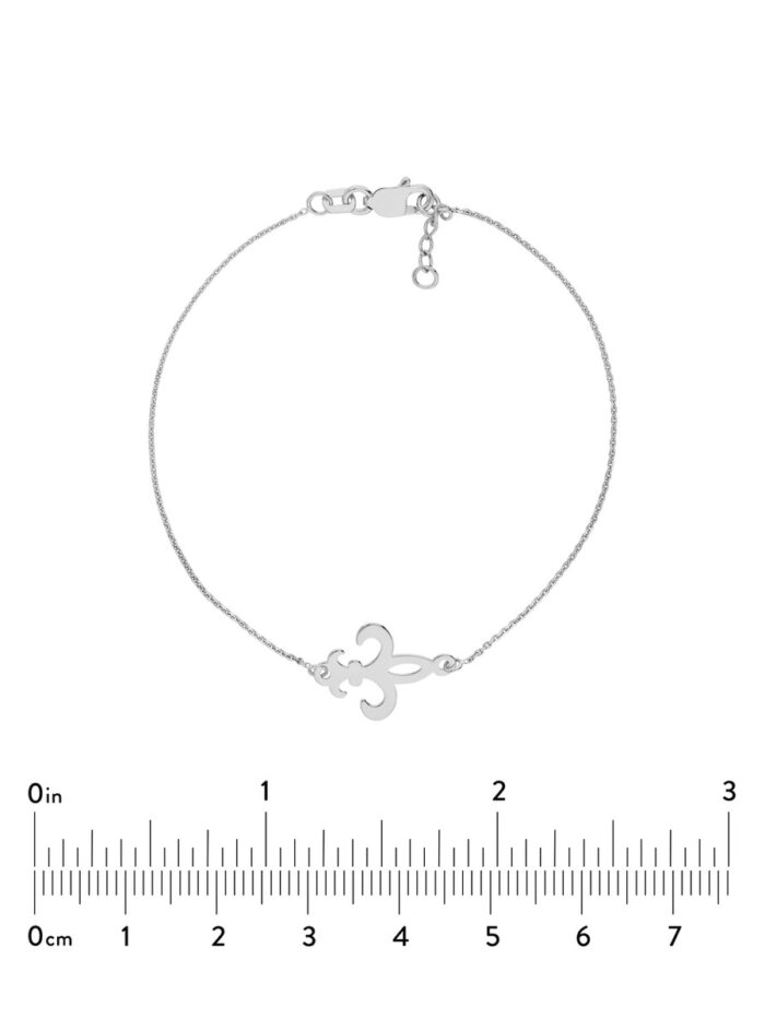 Embrace timeless elegance with this rhodium-plated sterling silver fleur-de-lis bracelet. The intricate design of the fleur-de-lis symbolizes beauty and strength, making it a meaningful and stylish accessory. The secure lobster clasp ensures comfortable wear, and the adjustable chain allows for a personalized fit.