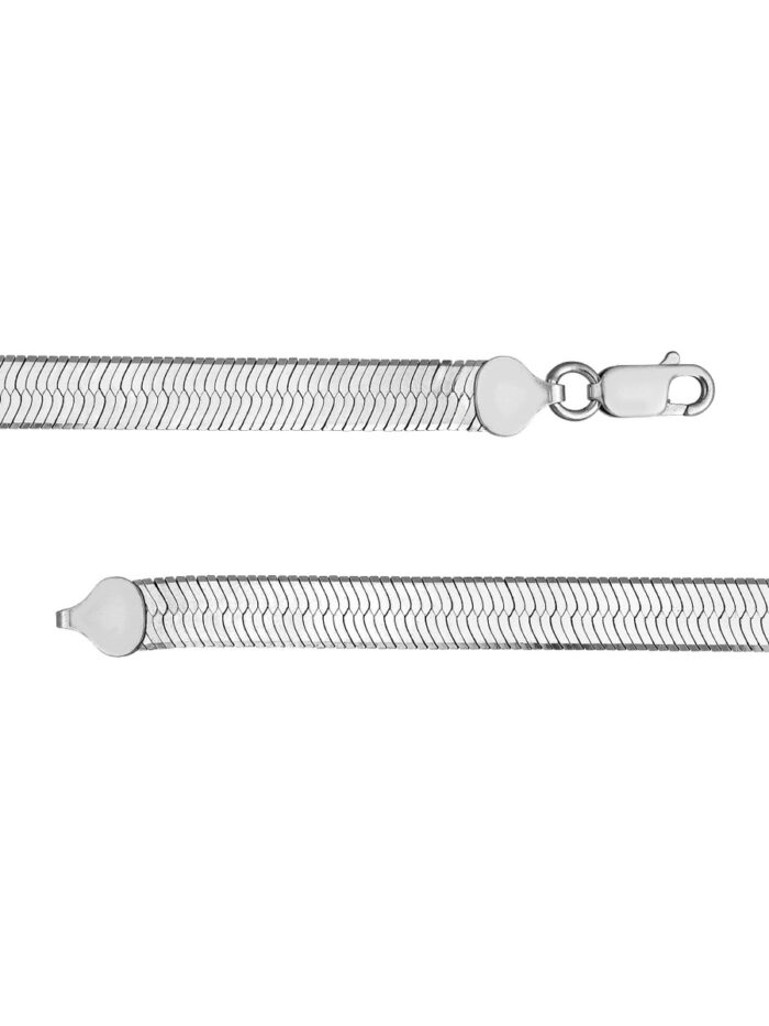 Make a statement with this sleek and sophisticated Sterling Silver Herringbone chain. Featuring a classic Herringbone pattern known for its unique interlaced links, this chain exudes a refined and modern aesthetic. The chain’s 7.30mm width adds a touch of boldness, while the Lobster closure ensures a secure and comfortable fit. With a length of 18.0 inches, it’s the perfect length for layering or wearing as a standalone piece.