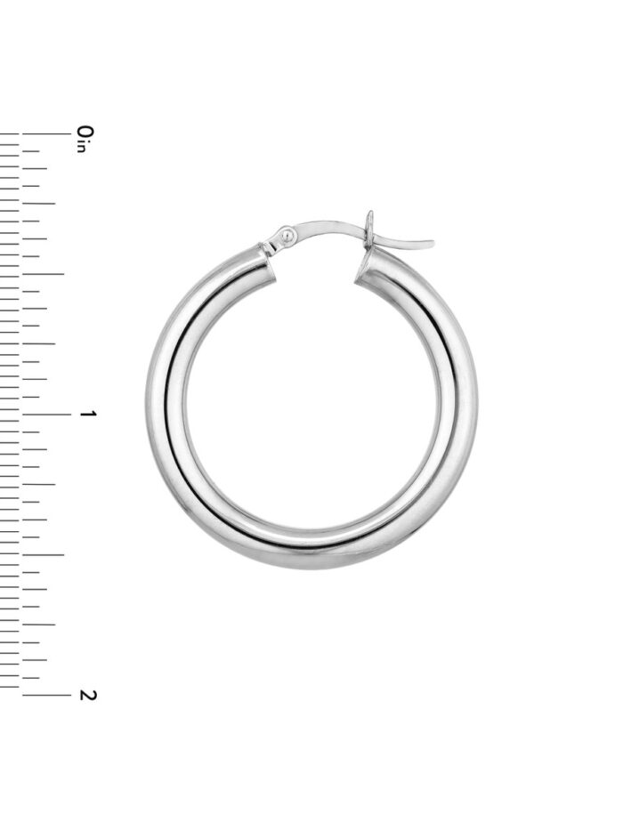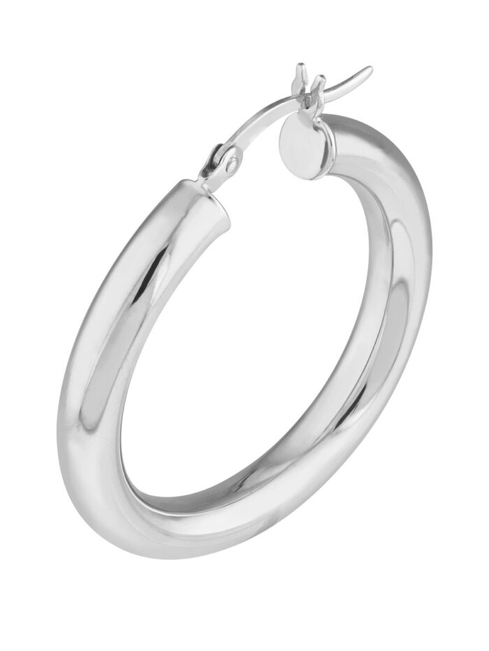 Elevate your everyday style with these elegant Sterling Silver hoop earrings. Crafted with a smooth, polished finish and rhodium plating for a luxurious shine, these thin hoops are lightweight and comfortable to wear. Measuring 4mm in width and 30mm in length, they effortlessly complement any outfit, from casual to dressy.