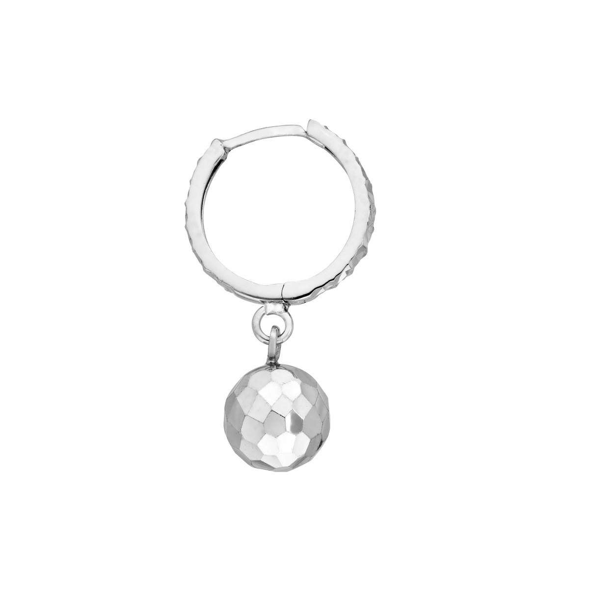 These sterling silver hoop earrings are the perfect everyday accessory. The delicate diamond-cut design adds a touch of sparkle, while the small ball drop creates a playful and feminine touch. Crafted from high-quality sterling silver, these earrings are both stylish and durable.