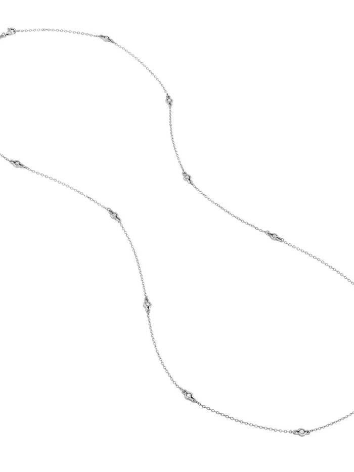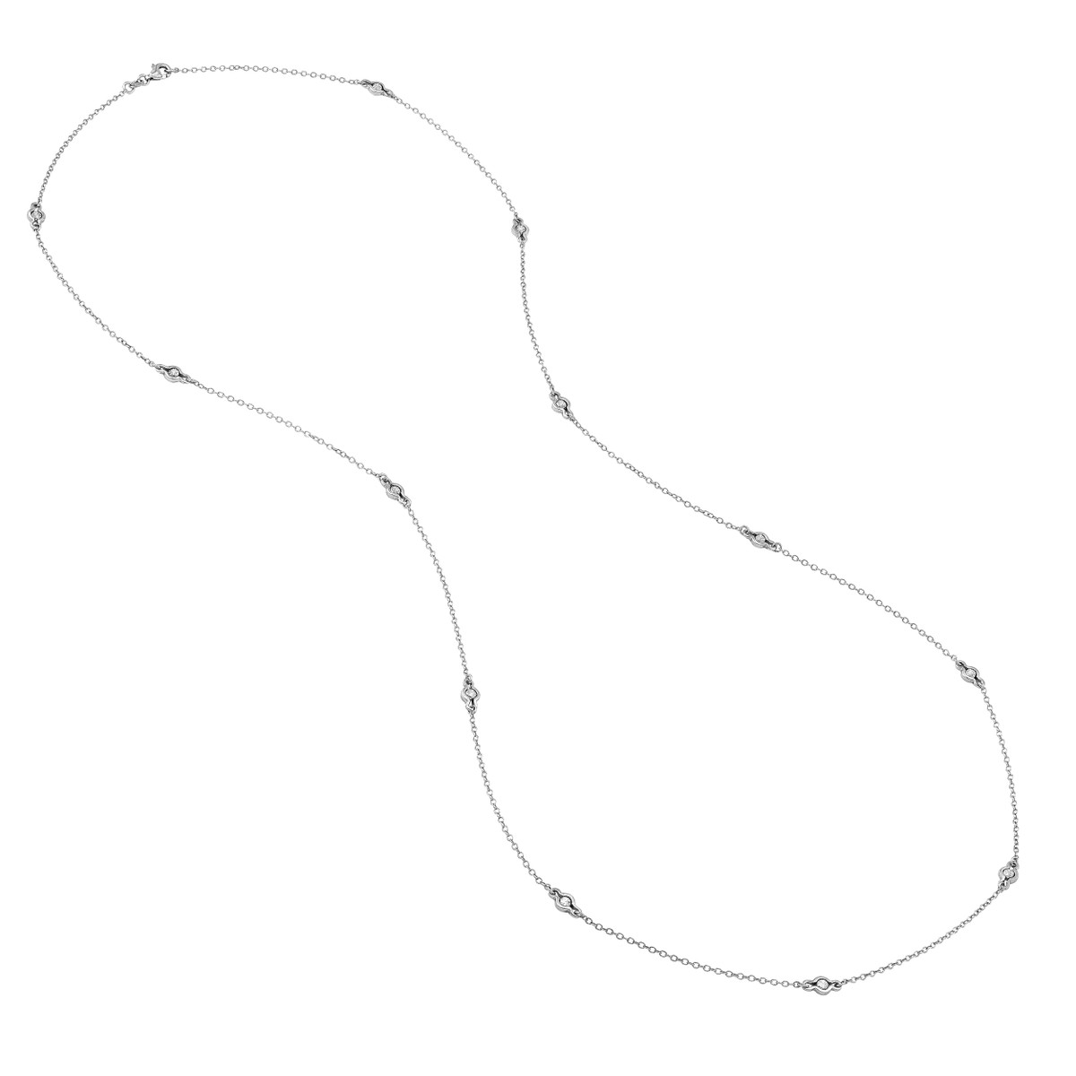 Make a statement with this stunning Sterling Silver necklace. Featuring a luxurious rope chain and an elegant array of diamond-cut disc stations with illusion frames, this piece exudes timeless sophistication.