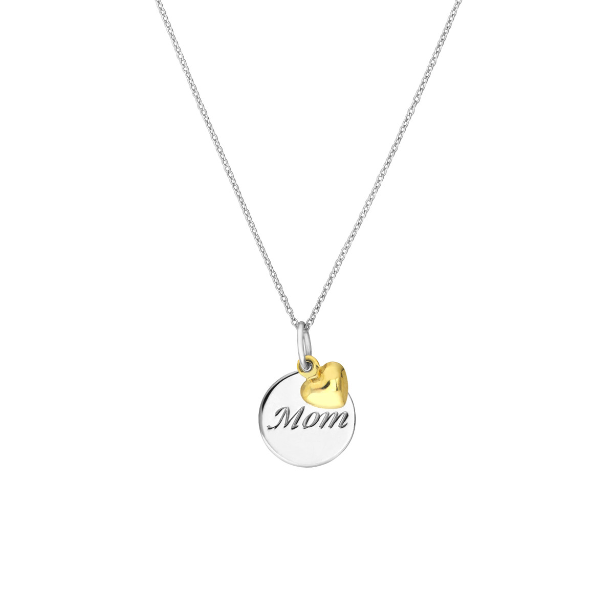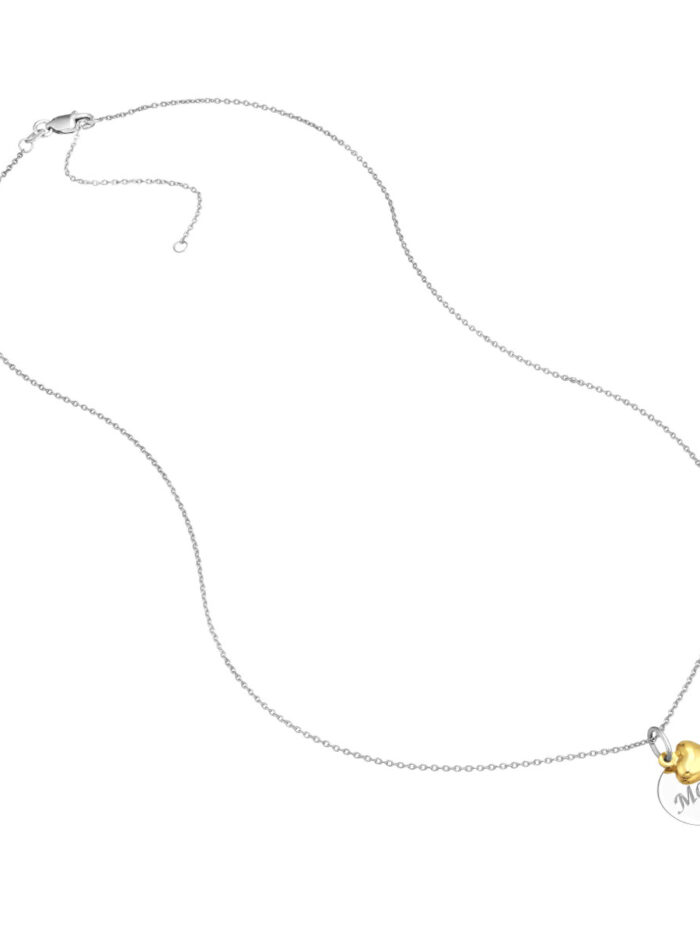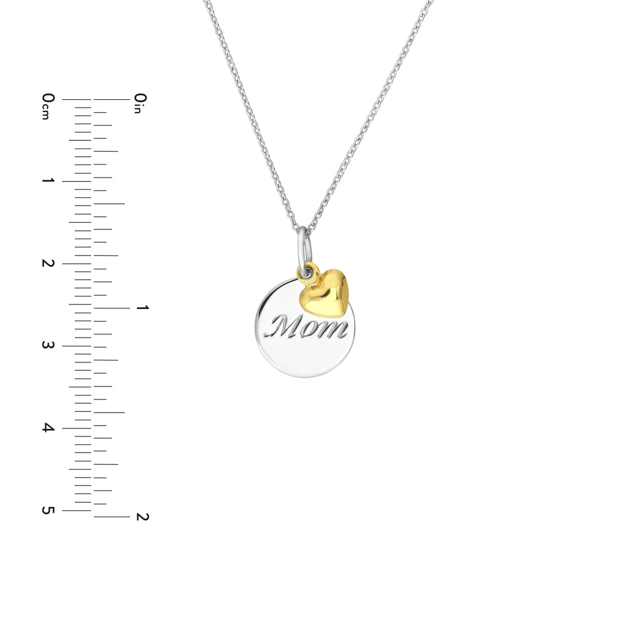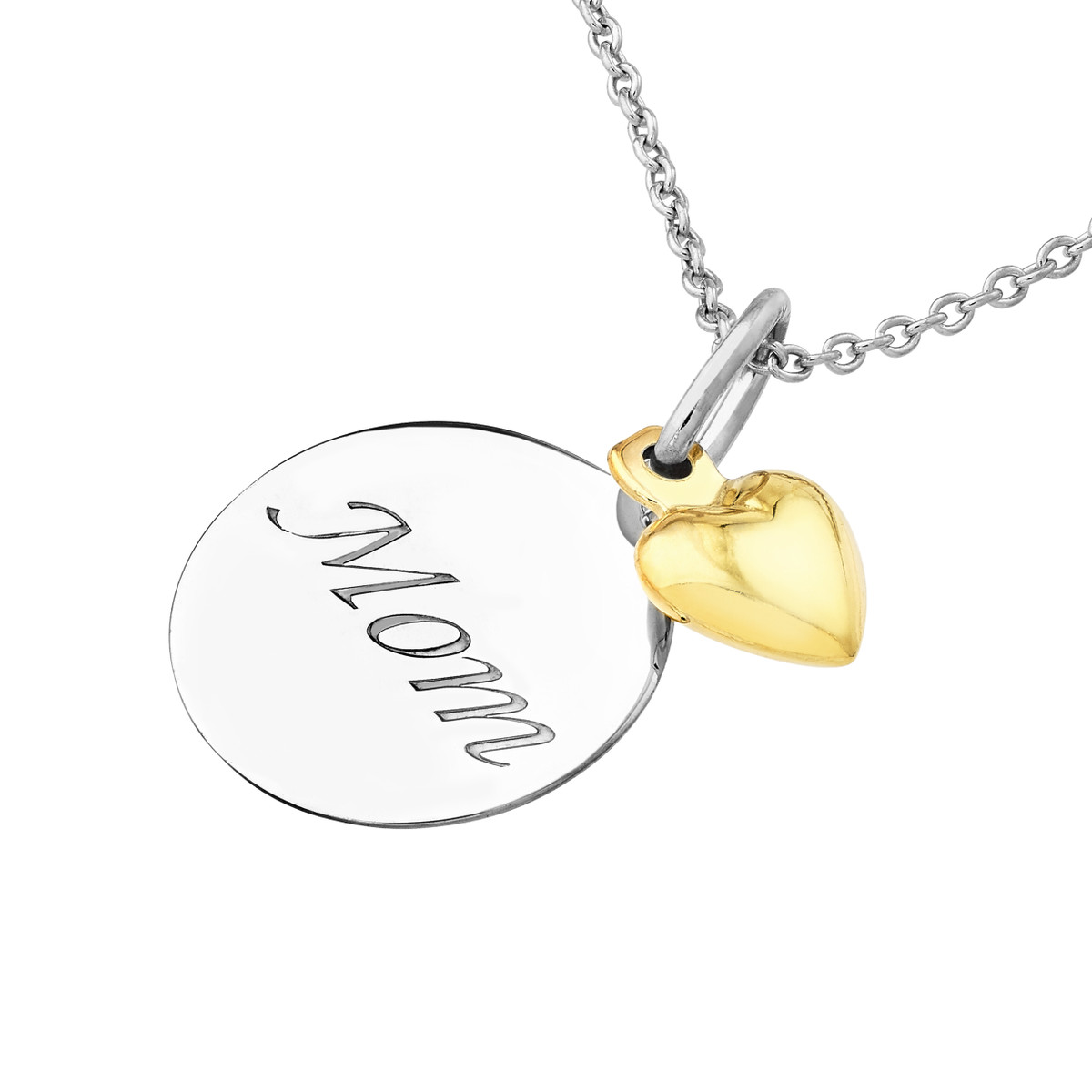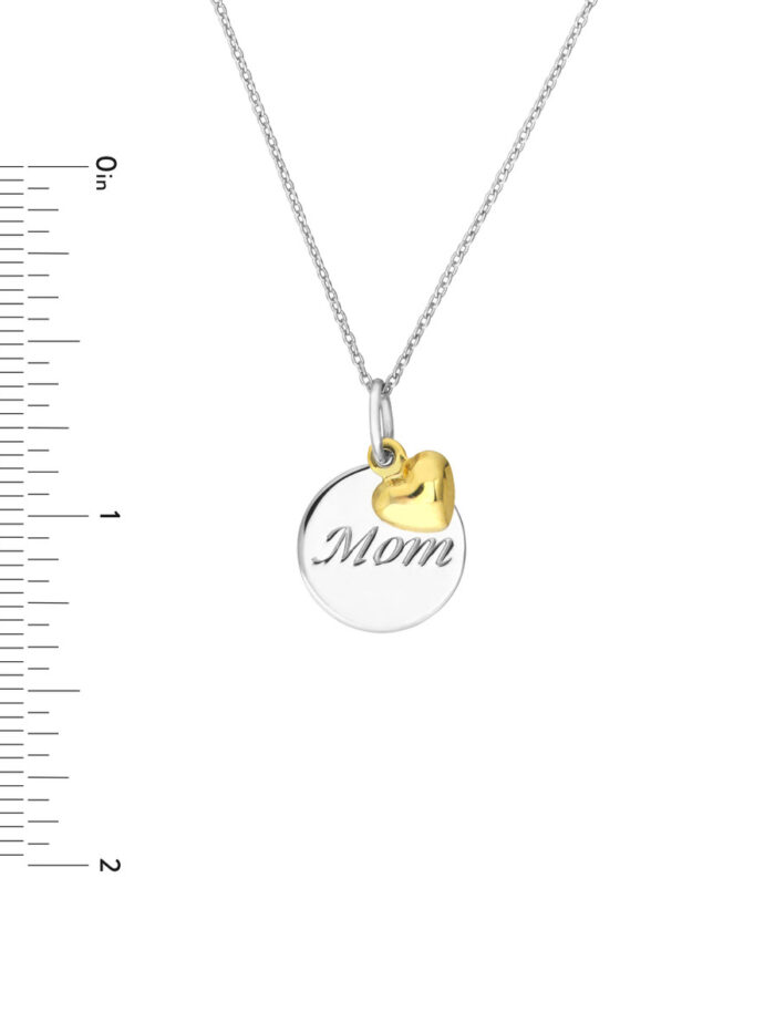 Celebrate the special bond with our Sterling Silver Mom Disc Necklace. This heartfelt piece features a delicate sterling silver chain adorned with a charming mom engraved disc pendant, accented by a gleaming gold-plated heart. A thoughtful and meaningful gift for any occasion, this necklace is sure to be treasured for years to come.