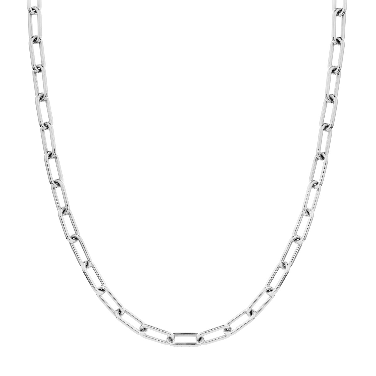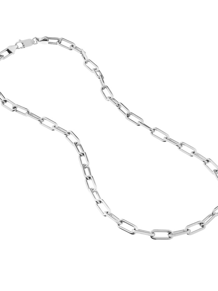 Make a bold statement with the Sterling Silver Paper Clip Chain. This eye-catching necklace features a series of interlocking paperclip links, creating a modern and edgy look. Crafted from high-quality sterling silver, it’s both durable and stylish. The 20-inch length is perfect for layering or wearing solo. The secure lobster closure ensures a comfortable and secure fit.