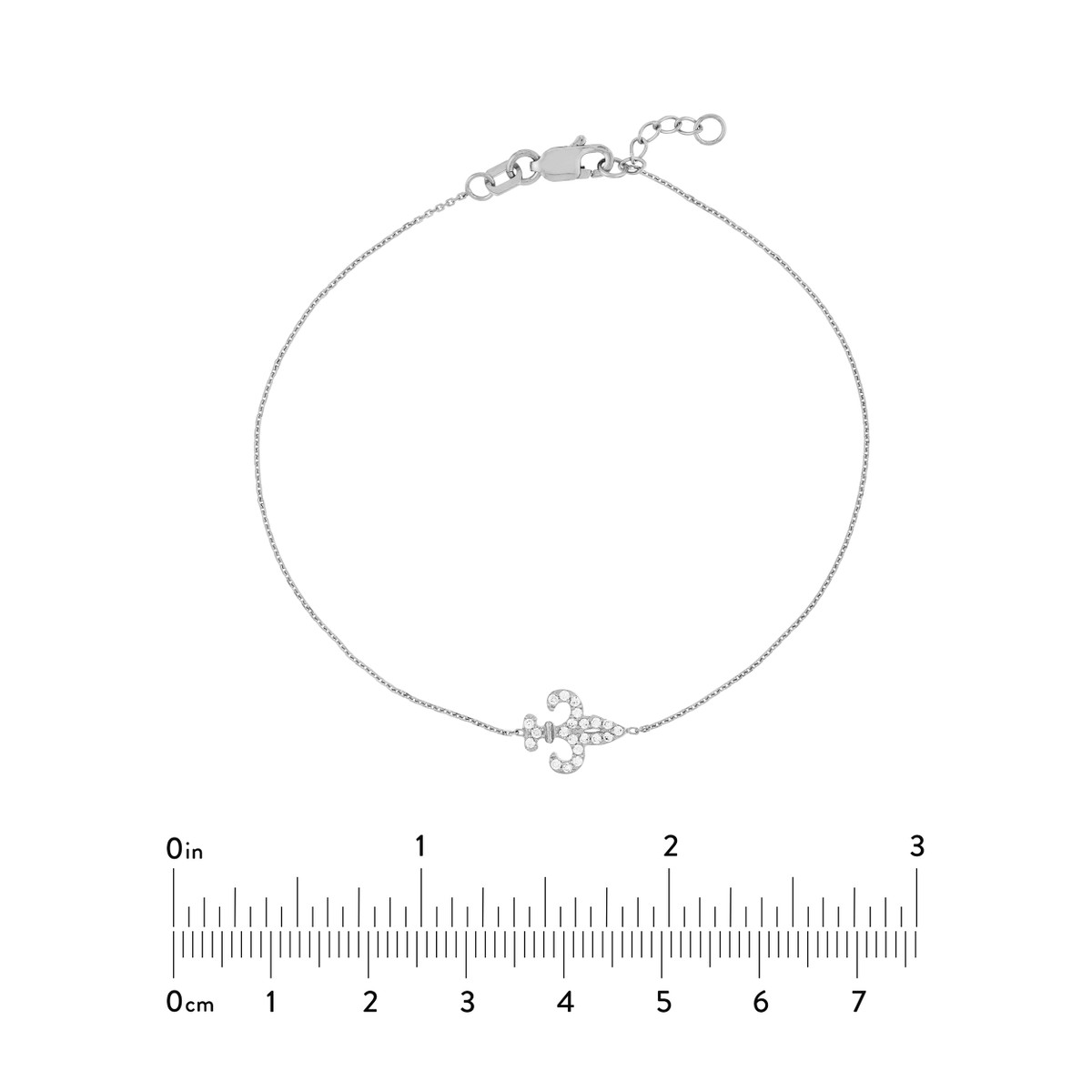 Embrace timeless elegance with this Sterling Silver Sideways Mini CZ Fleur-de-Lis Bracelet. The delicate fleur-de-lis design, adorned with sparkling CZ stones, adds a touch of sophistication to your everyday look. Crafted from Sterling Silver and plated in rhodium, yellow gold, or rose gold, this bracelet is both durable and beautifully lustrous. The adjustable cable bangle allows for a comfortable and customized fit.