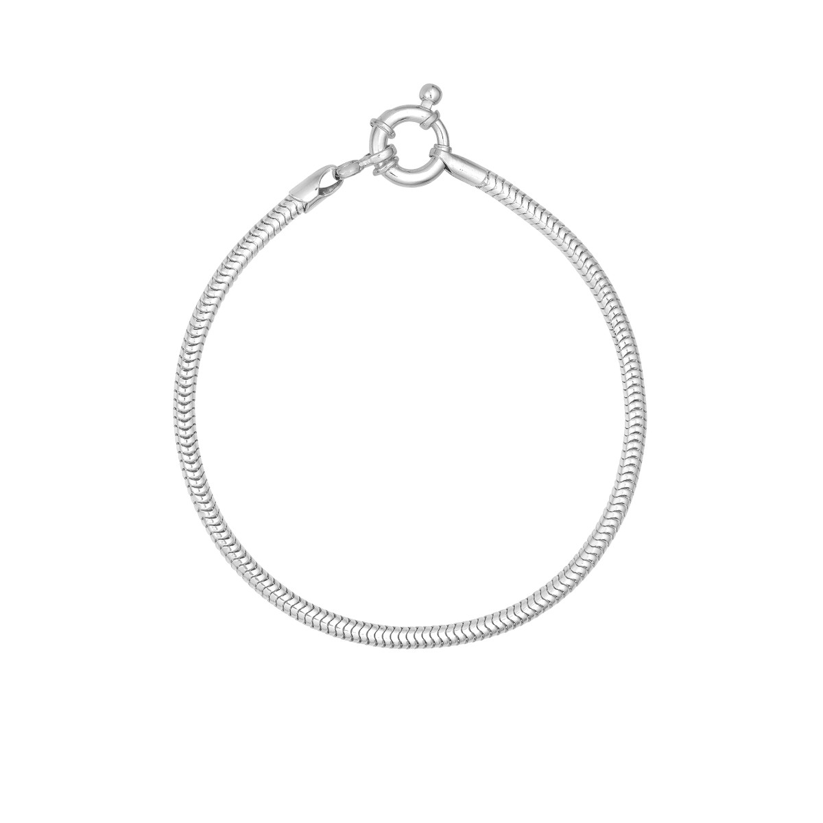Embrace timeless elegance with this Sterling Silver Snake Chain Bracelet. The smooth, sleek design of the snake chain gracefully drapes the wrist, while the secure spring ring closure ensures comfortable wear. Measuring 3mm in width and 7 inches in length, this bracelet is the perfect everyday accessory.