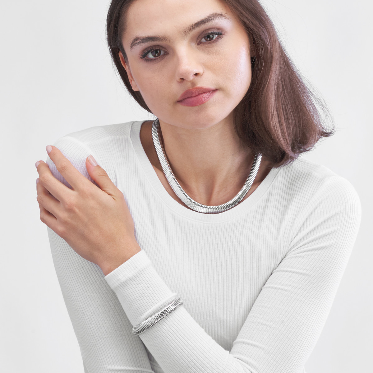 Add a touch of timeless elegance to your wrist with our 14mm Sterling Silver Tubogas Bracelet. Crafted with a beautiful Tubogas design, this bracelet is both stylish and durable. The secure box clasp closure ensures a comfortable and confident fit. This bracelet is a versatile accessory that can be dressed up or down, making it perfect for any occasion.