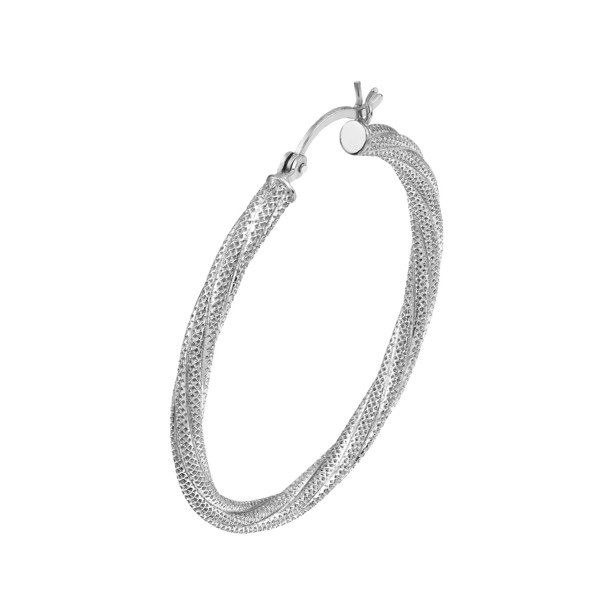 Elevate your everyday look with these stunning sterling silver hoop earrings. Featuring a delicate twisted design and a lustrous rhodium plating, these hoops add a touch of sophistication to any outfit. Crafted with meticulous attention to detail, they secure comfortably with a hinge closure, ensuring a secure and stylish fit.