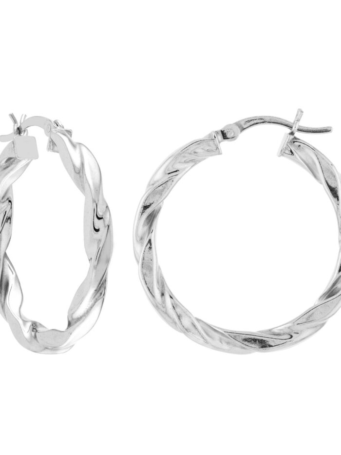 These Sterling Silver Twisted Polished and Satin Hoop Earrings add a touch of understated elegance to your look. The twisted design features a unique interplay of polished and satin finishes, creating a captivating visual effect. Crafted with rhodium plating for a long-lasting shine, these earrings are a versatile addition to any jewelry collection.