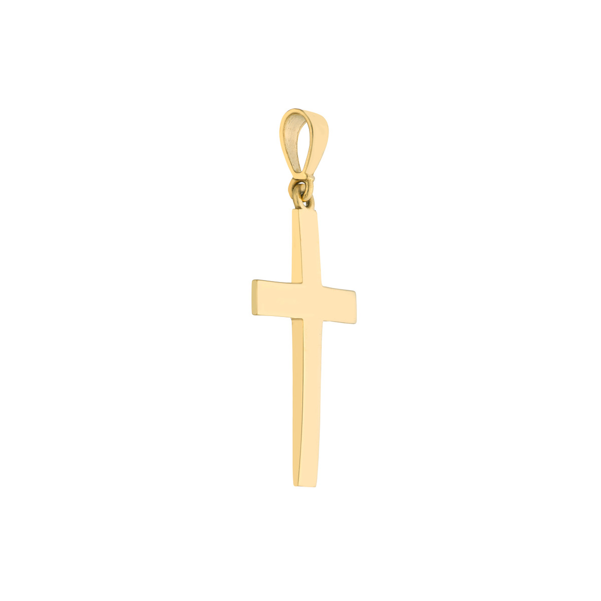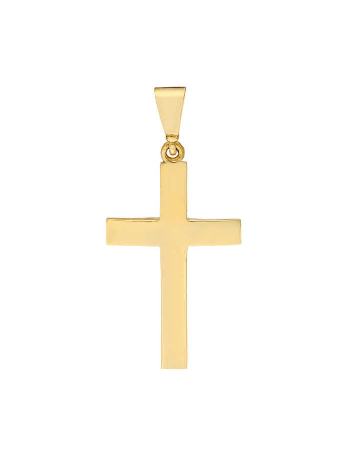 Express your personal style with the timeless elegance of our Straight Edge Cross Pendant. Crafted from gleaming 10K yellow gold, this pendant features a delicate cross design that adds a touch of sophistication to any look. Wear it alone or layer it with other chains for a custom, eye-catching appeal.