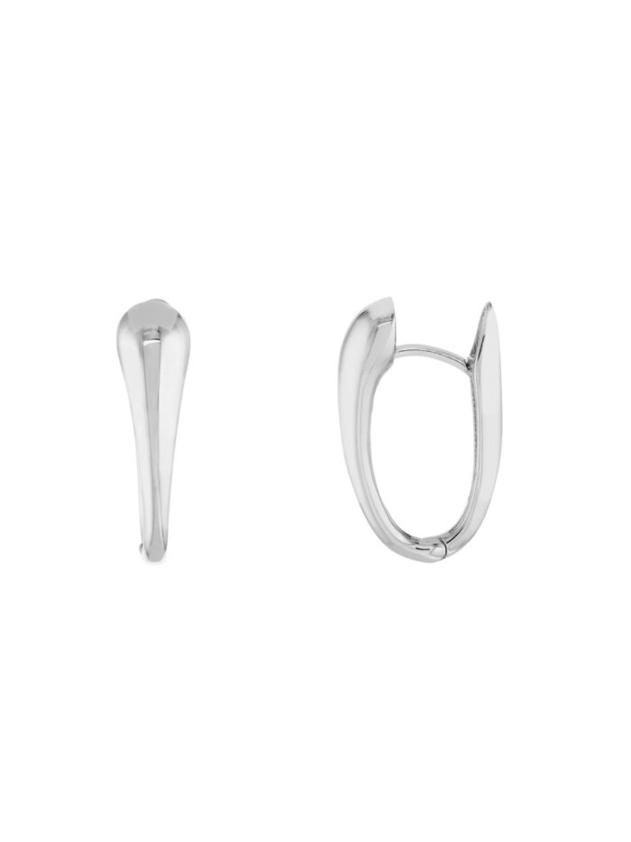Elevate your everyday style with these timeless 14K white gold tapered oval hoop earrings. Their classic design and sleek tapered silhouette make them a versatile and chic addition to any outfit. The secure snap-lock clasp ensures they stay in place with ease.