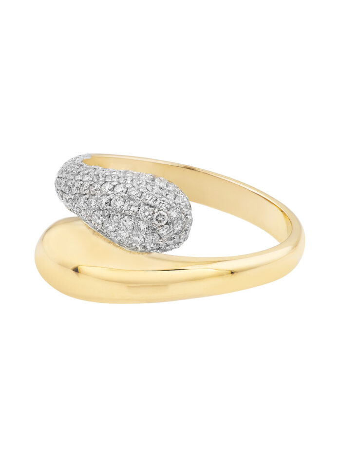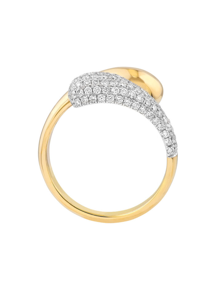 Teardrop Diamond Bypass Ring – 14K Yellow & White Gold – by Dazyle