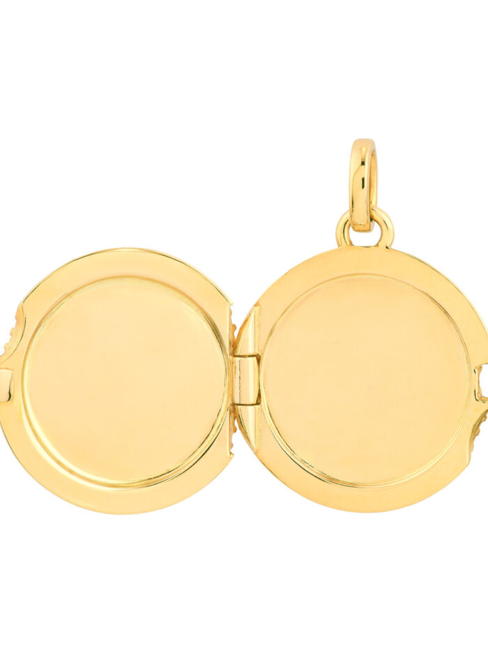 Adorn yourself with the delicate beauty of this textured circle locket, a perfect symbol of cherished memories. Crafted in 14K yellow gold, this locket offers a sweet and sacred space to hold your most treasured memento. The cable chain compatibility allows you to personalize its style, creating a truly meaningful and elegant piece.