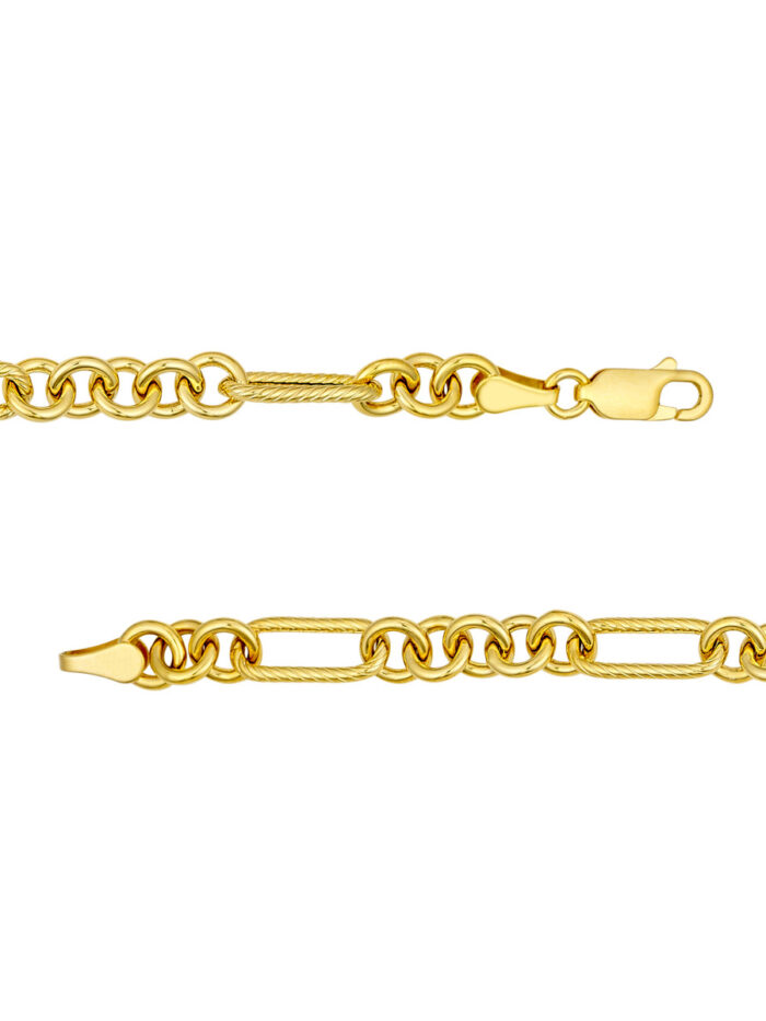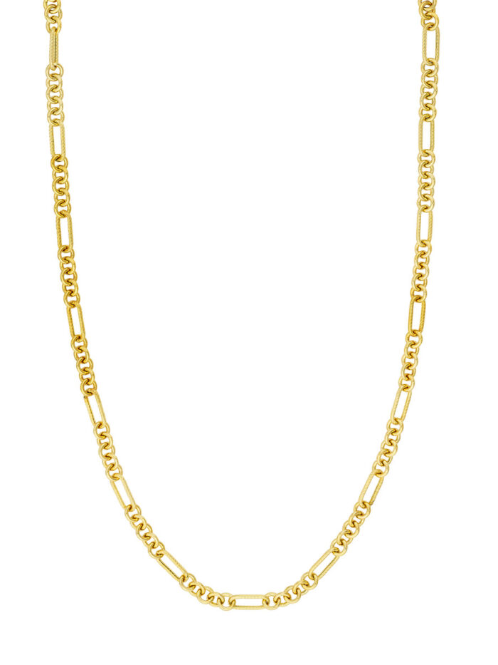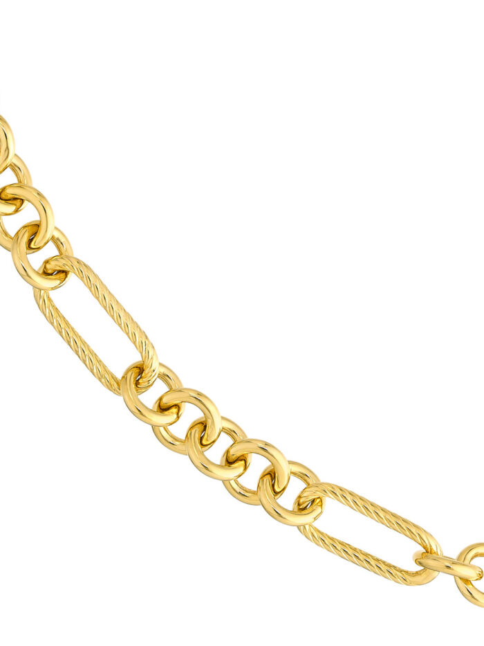 Elevate your style with this unique and eye-catching Textured Oval Rolo Necklace. Crafted in 14K yellow gold, the necklace features a captivating link texture that adds a touch of artistry and dimension. The secure lobster clasp closure ensures a comfortable and confident wear.